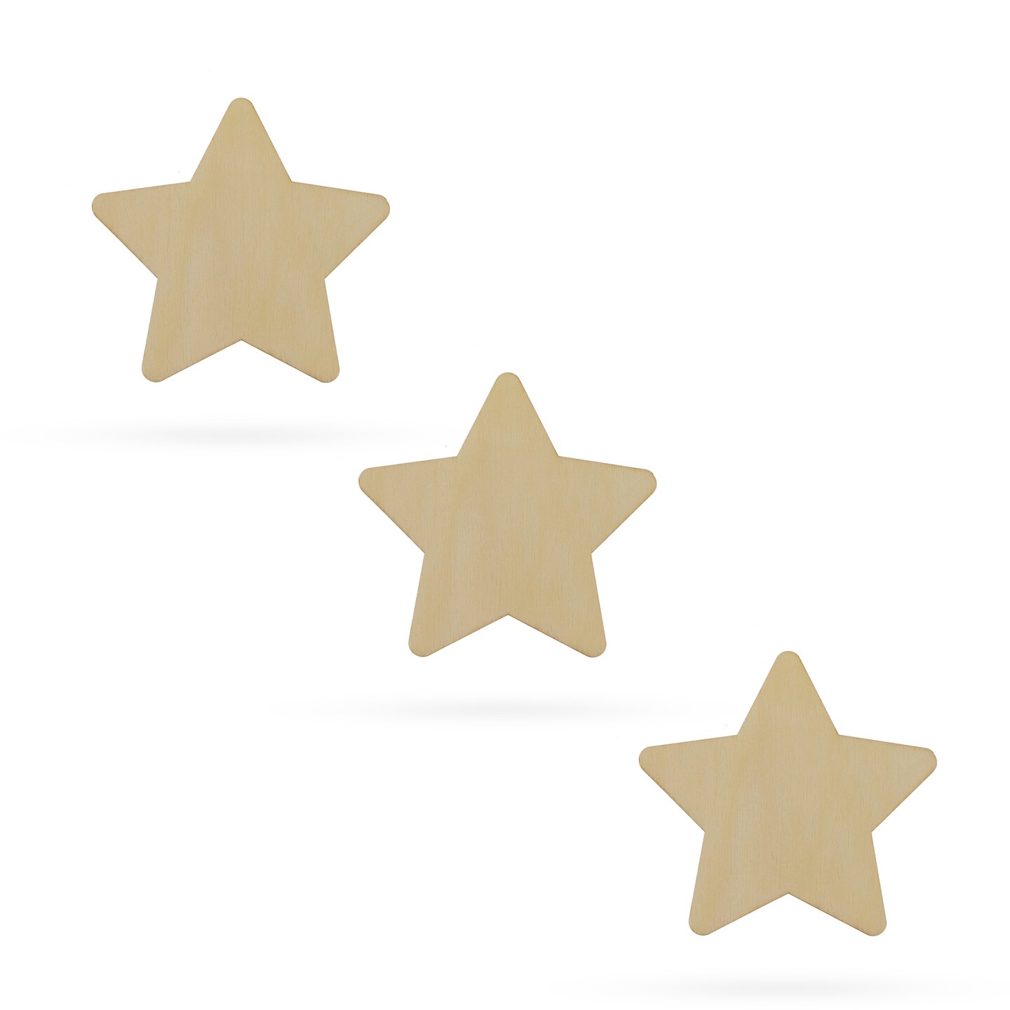 3 Stars Unfinished Wooden Shapes Craft Cutouts DIY Unpainted 3D Plaques 4 Inches