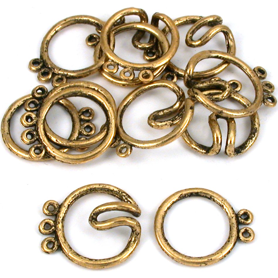 3 Strand Hook & Eye Clasp Antq Gold Plt 21mm Approx 6