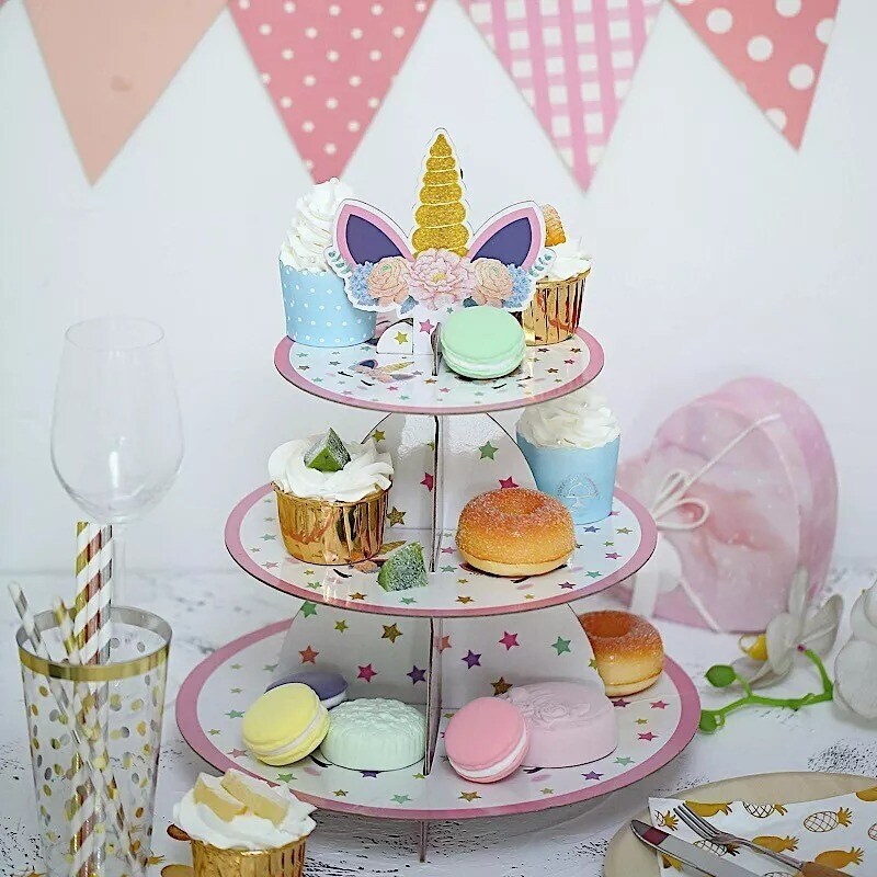 3 Tier 15" tall Unicorn Top Cardboard Cupcake Stand Wedding Dessert Holder Set