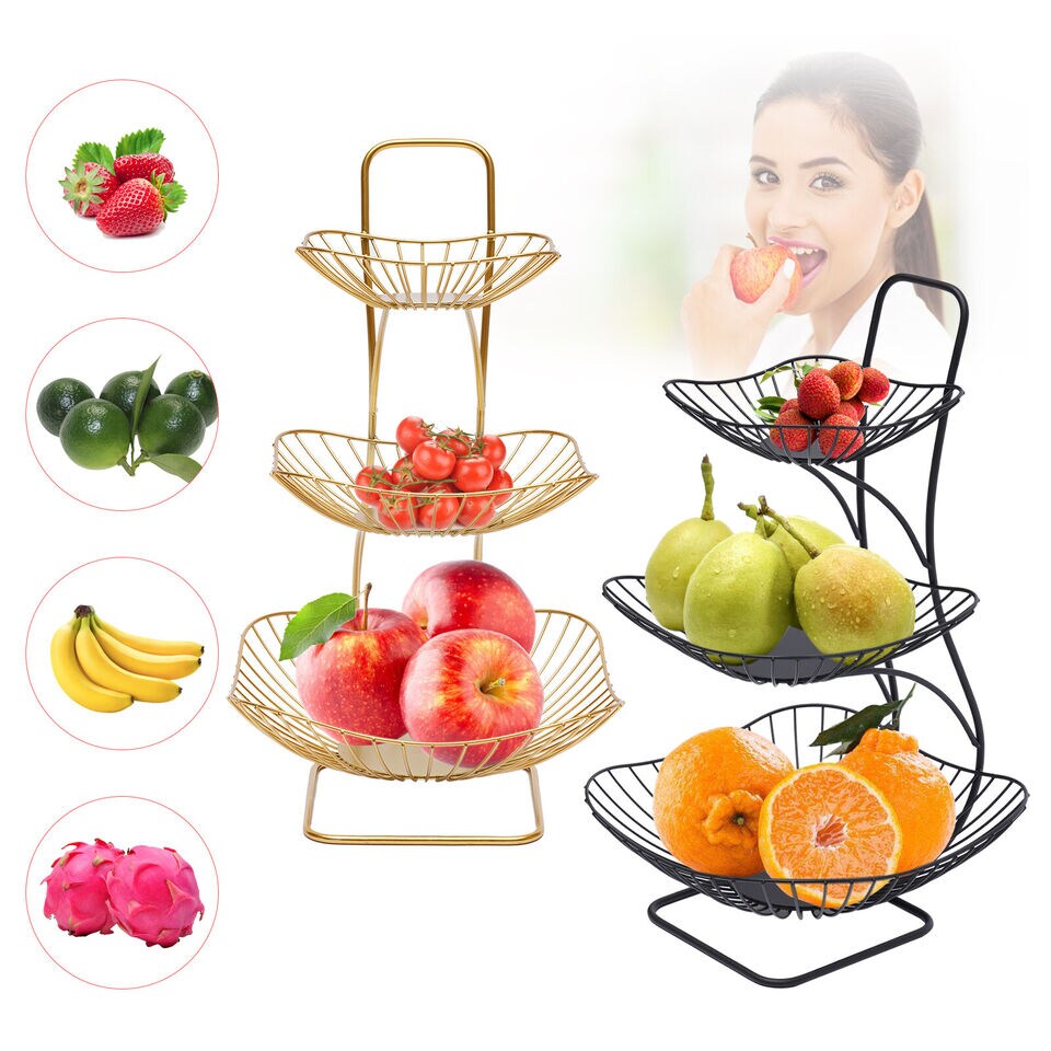 3 Tier Gold Countertop Fruit Basket for Kitchen Vegetable Fruits Basket Bowl Stand