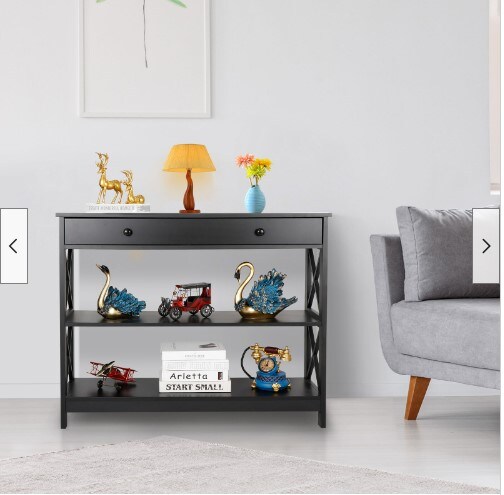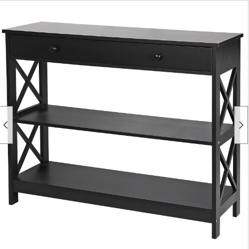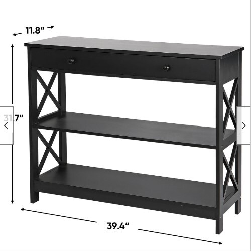 3 Tier Narrow Entryway End Sofa Table w/Storage Drawer Black Wood Console Table