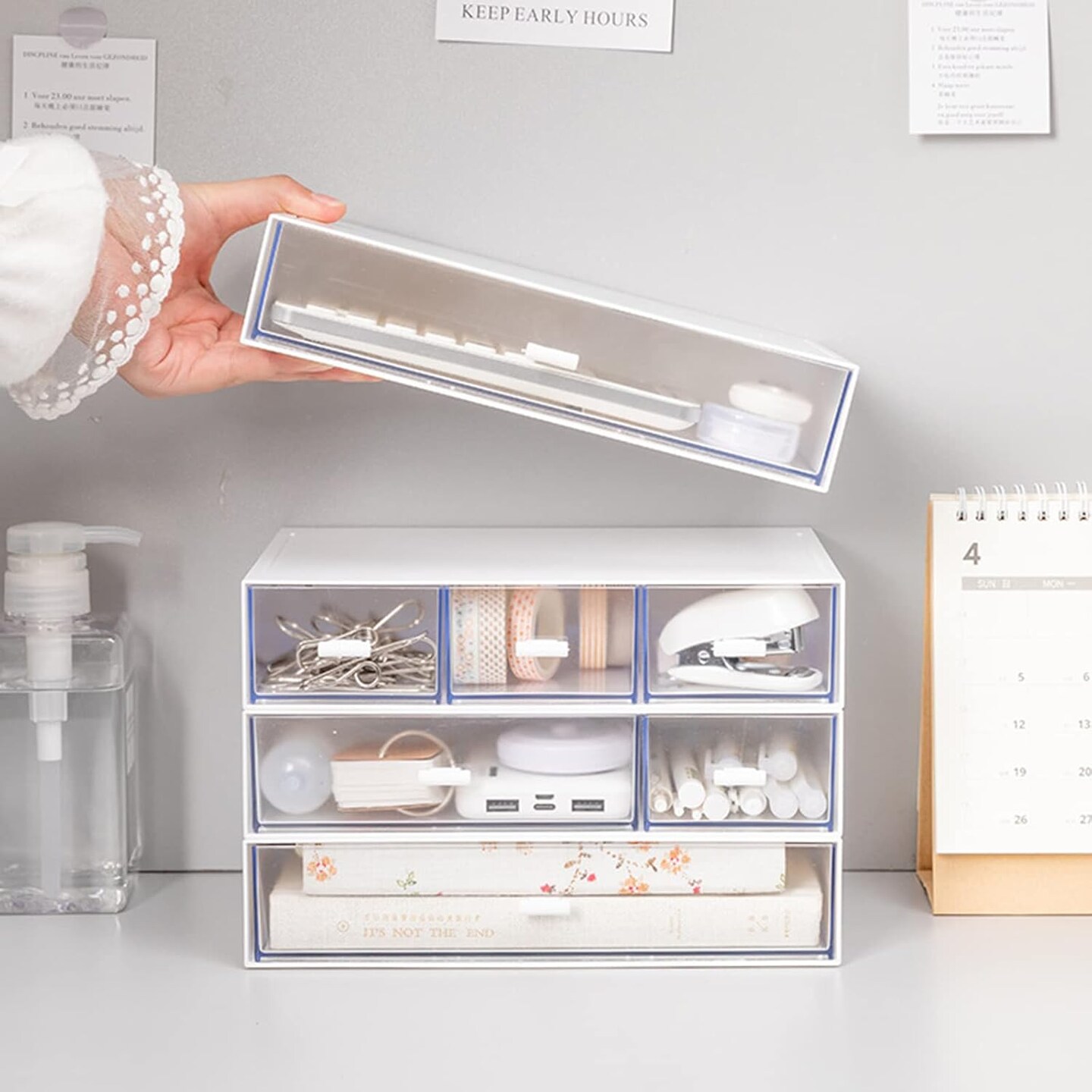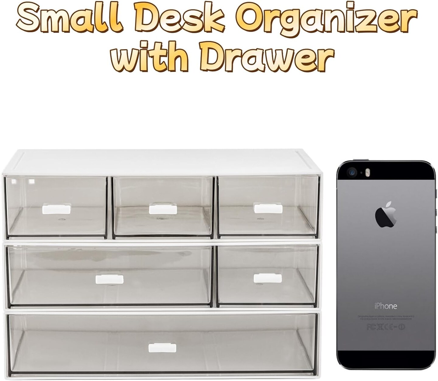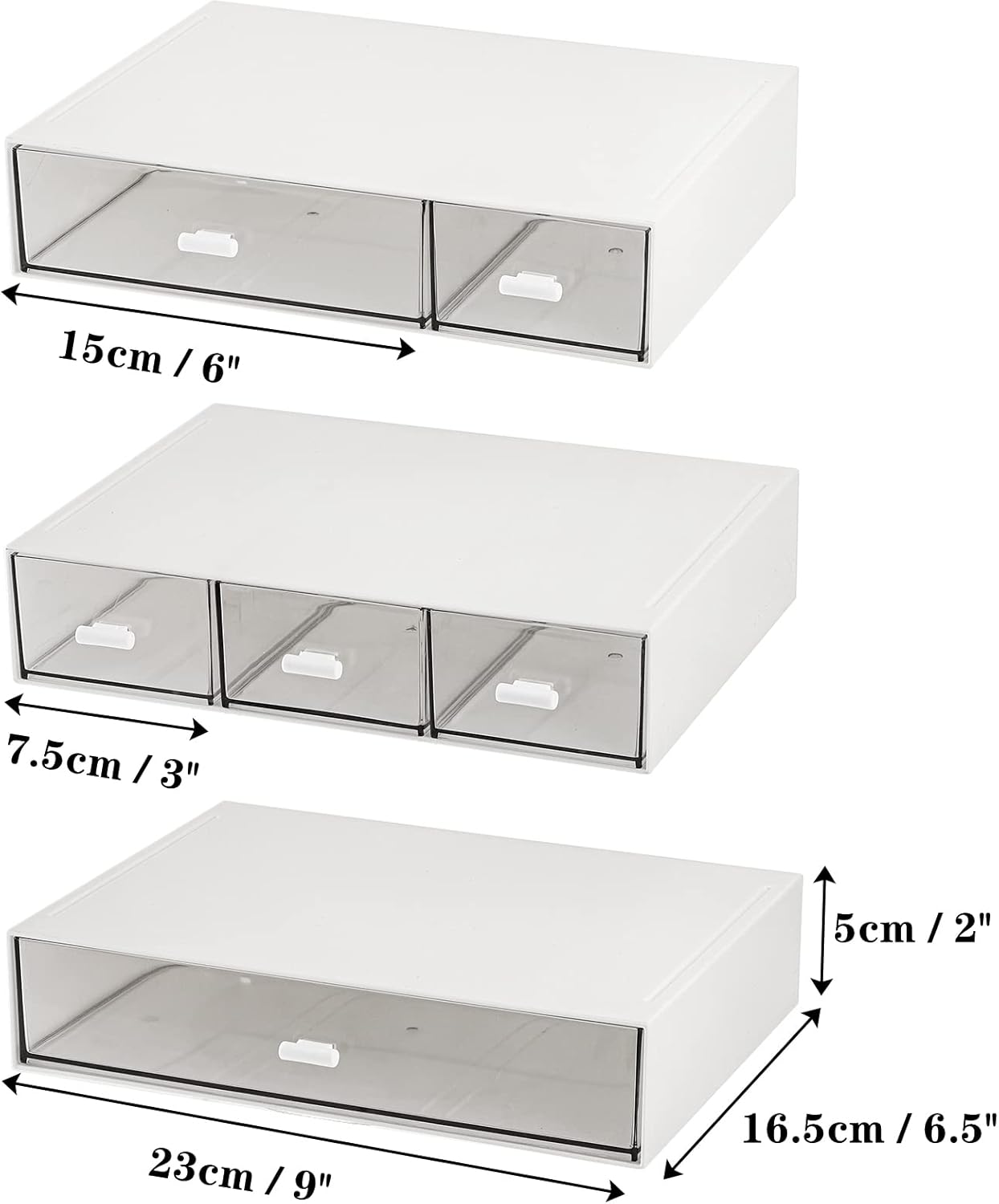 3 Tier Small Desk Organizer with Drawer, Stackable Desktop Storage Box, Portable Size Office Supplies Jewelry Storage Case, Makeup and Stationary Organizer for Cosmetic, School Supply