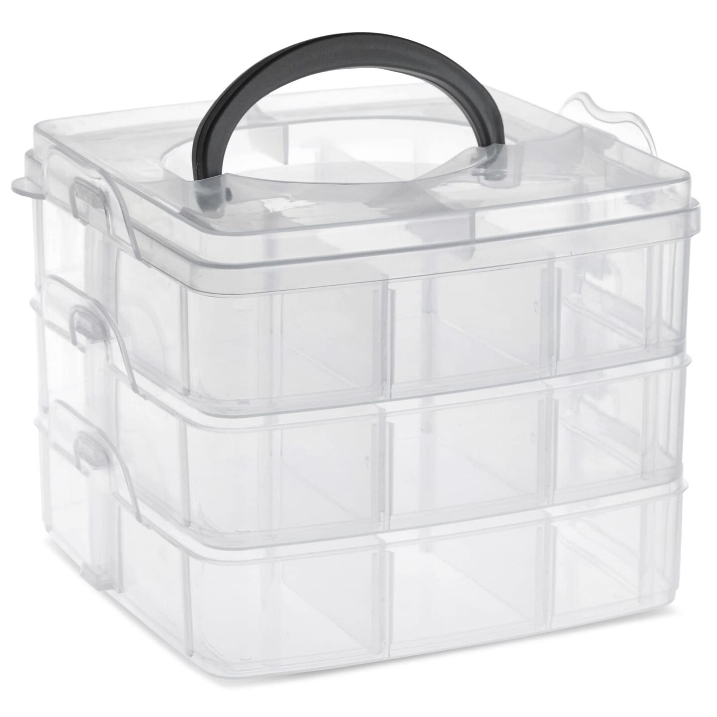 3 Tier Stackable Storage Containers with Adjustable Compartments for Beads, Sewing Accessories, Arts and Crafts Supplies (6 x 6 x 5 In)