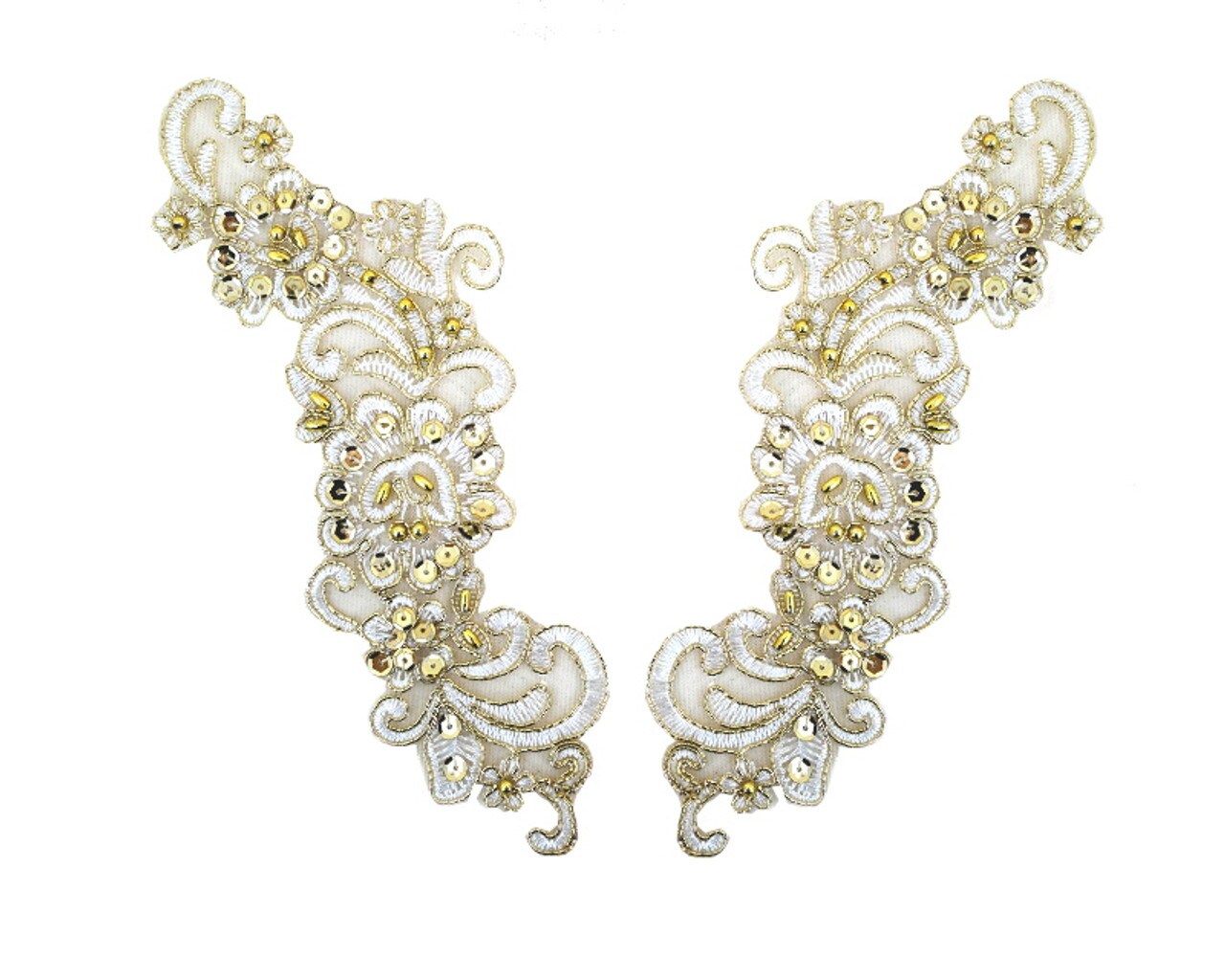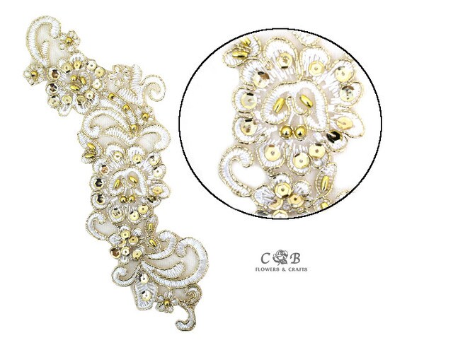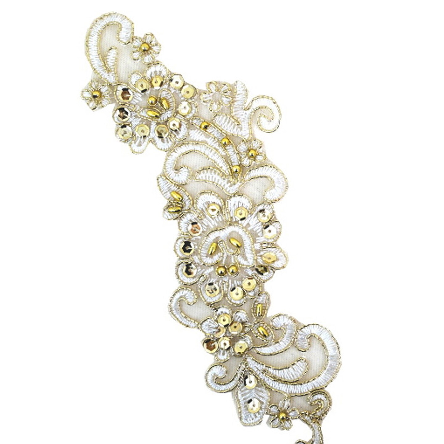 3" Wide x 9" Long Gold Bridal Venice Lace with Beaded Sequins Pack of 25