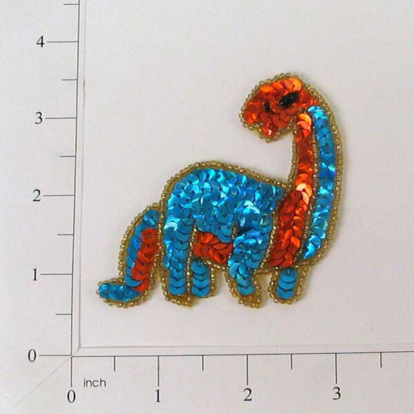 3" x 2 3/4" Billy Brontosaurus Dinosaur Sequin Applique/Patch