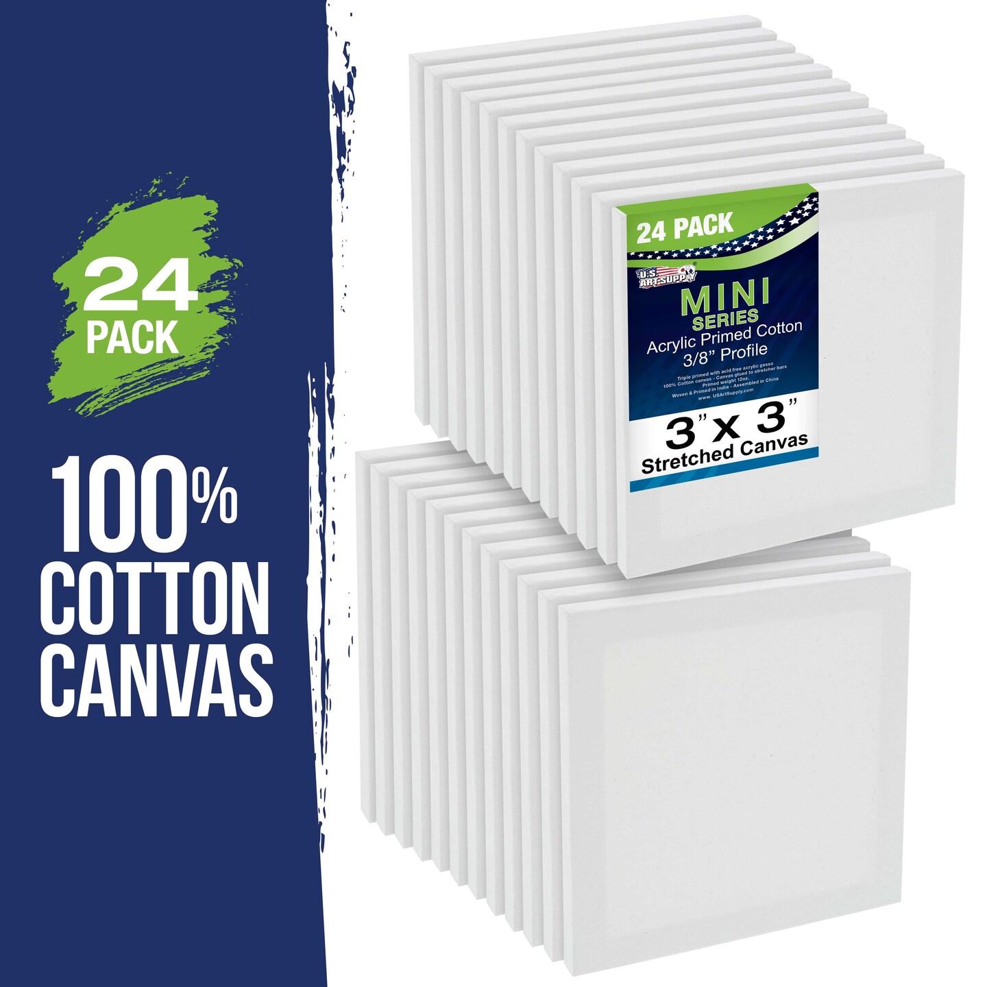 3" x 3" Mini Professional Primed Stretched Canvas - 24 Pack