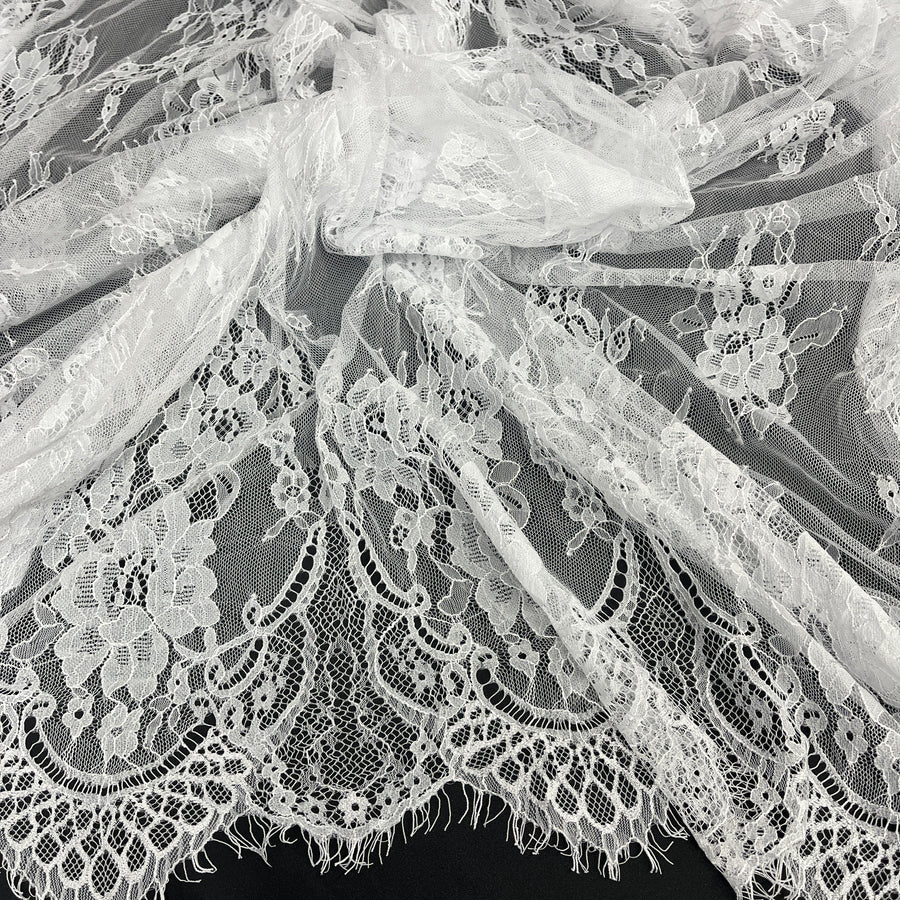 3 Yards Chantilly Embroidered Lace Fabric with Eyelash Scallop