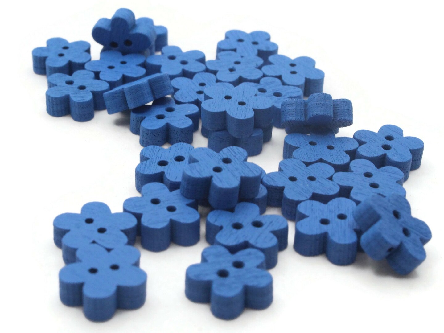 30 11mm 2 Hole Wooden Flower Buttons Mixed or Individual Color Packs