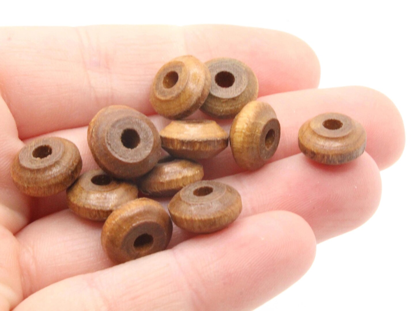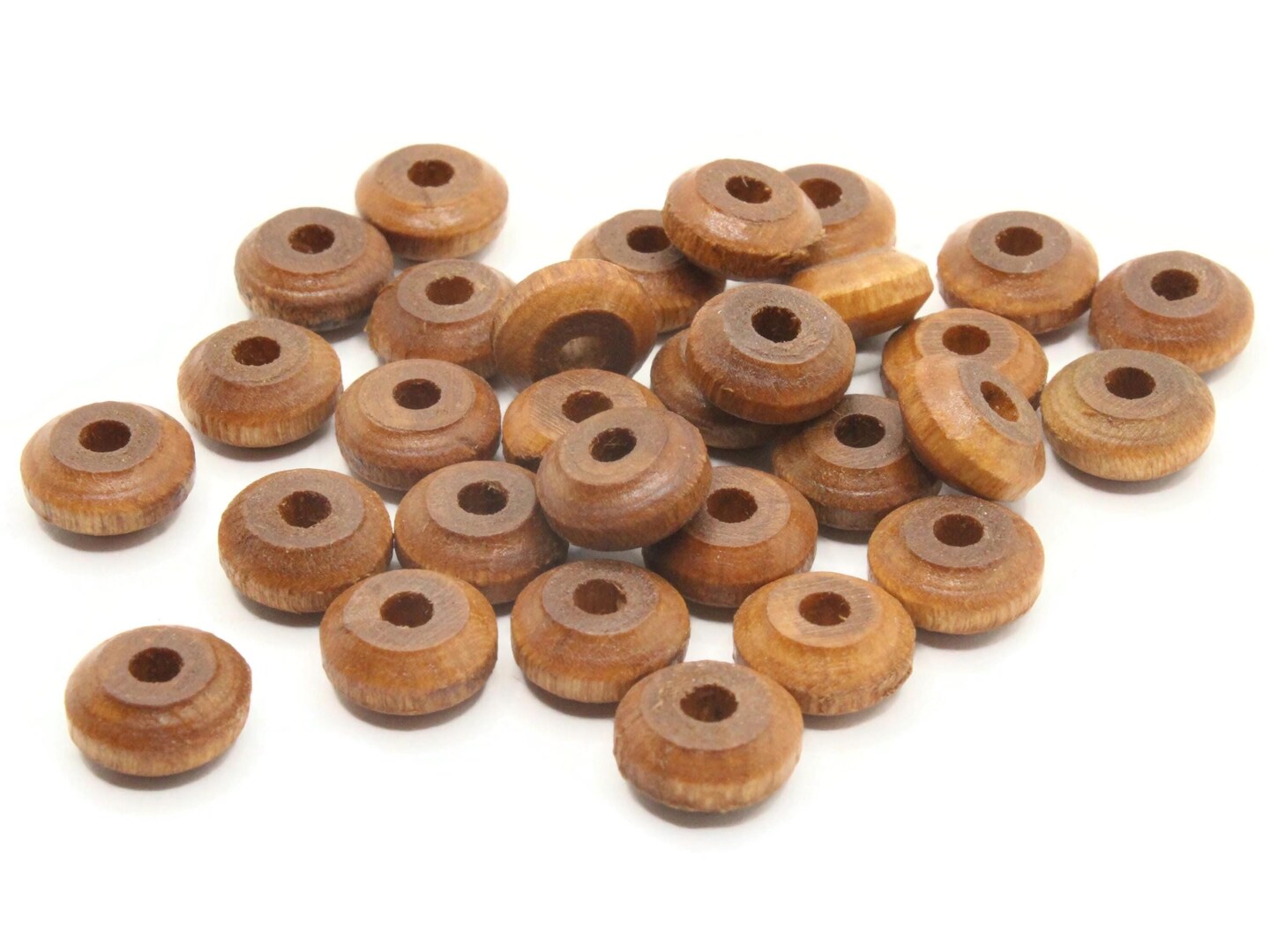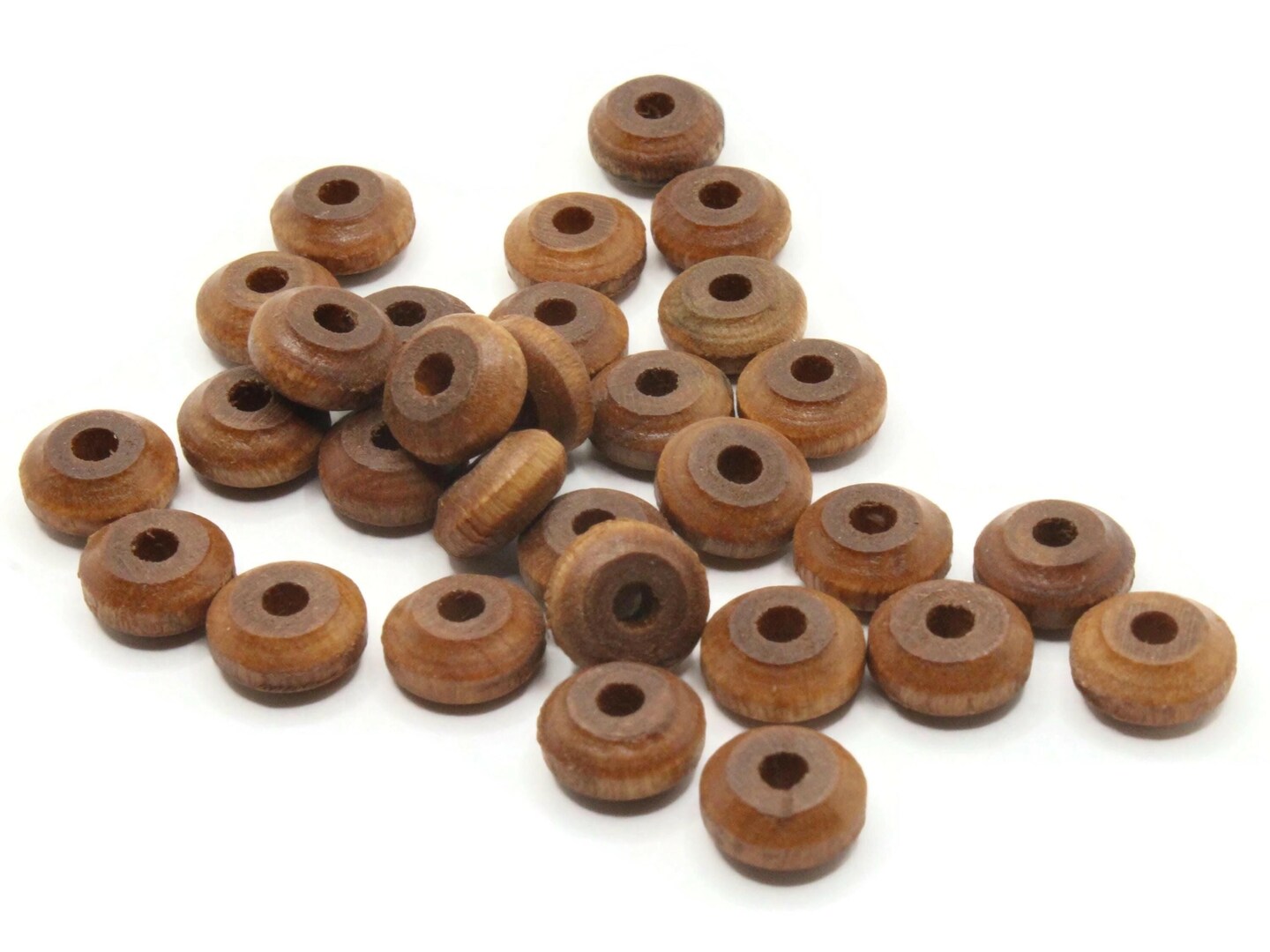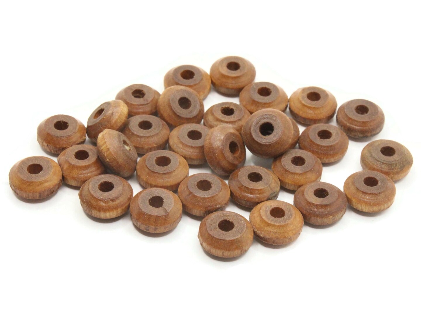 30 11mm Vintage Brown Flat Round Wood Disc Beads