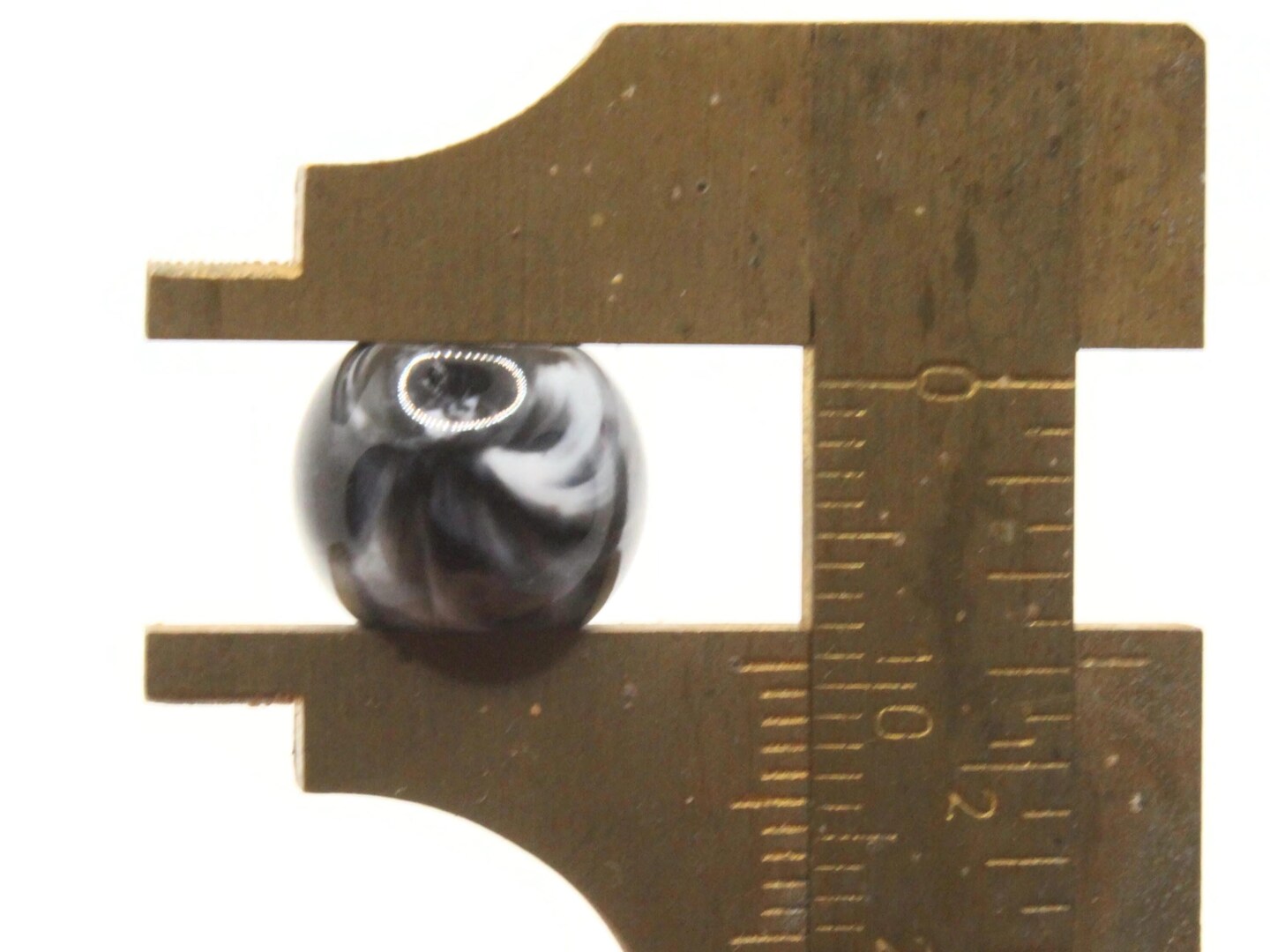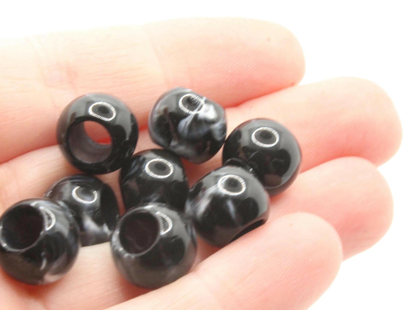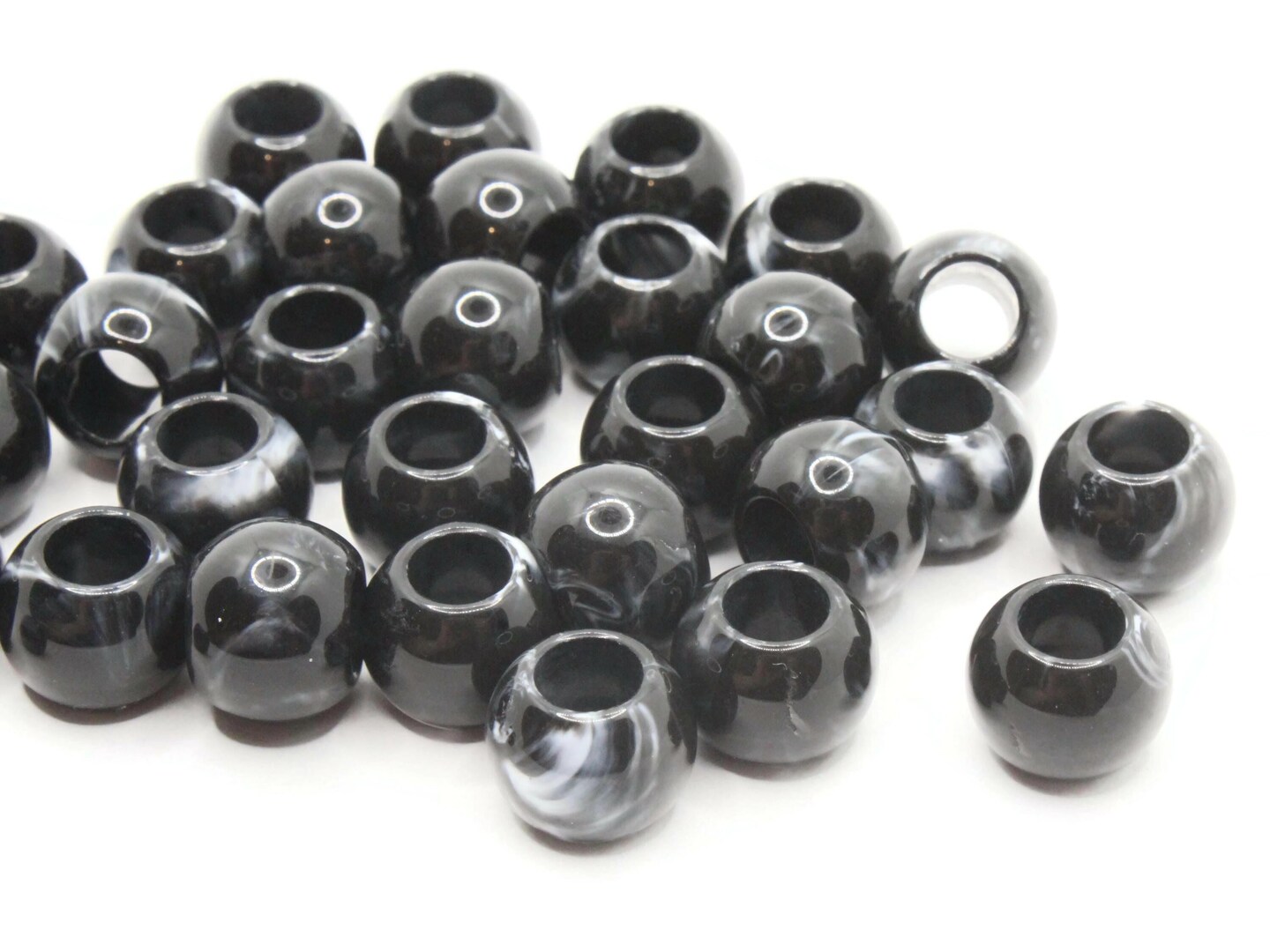 30 12mm Black and Gray Swirl Large Hole Round Plastic Beads