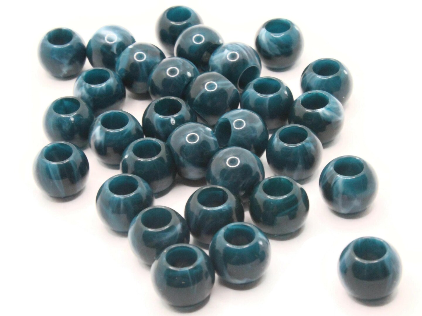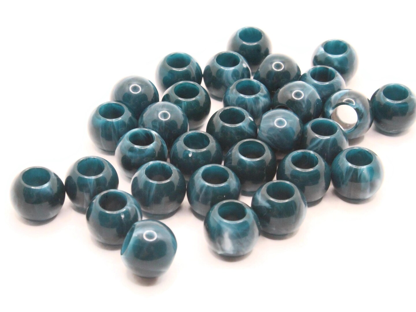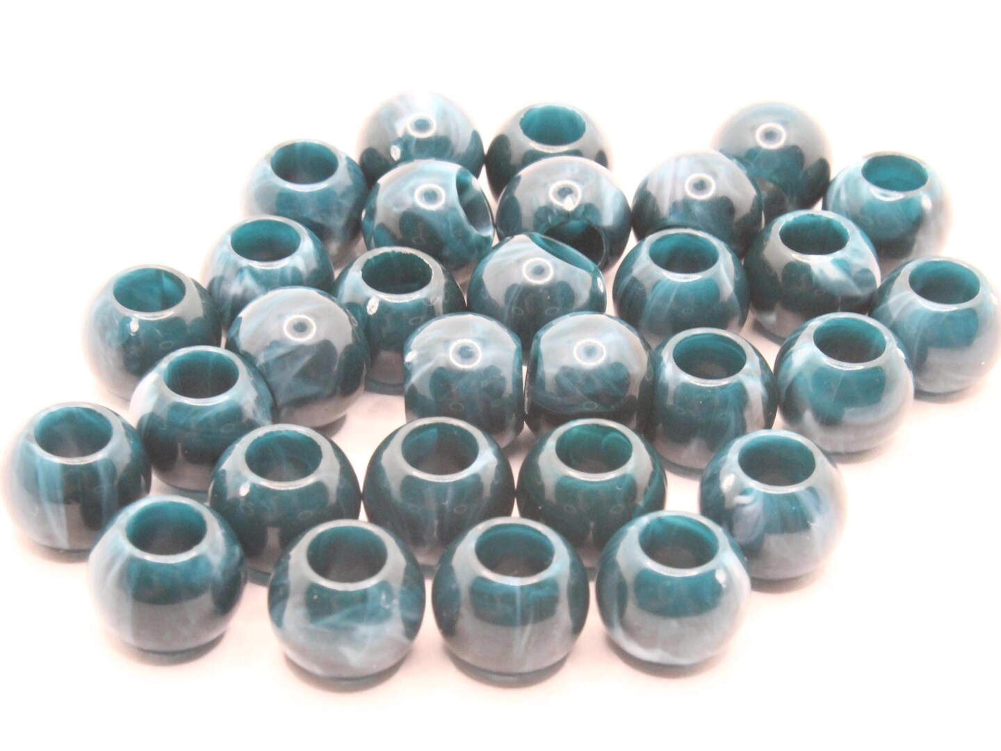 30 12mm Blue and Gray Swirl Large Hole Round Plastic Beads bE1
