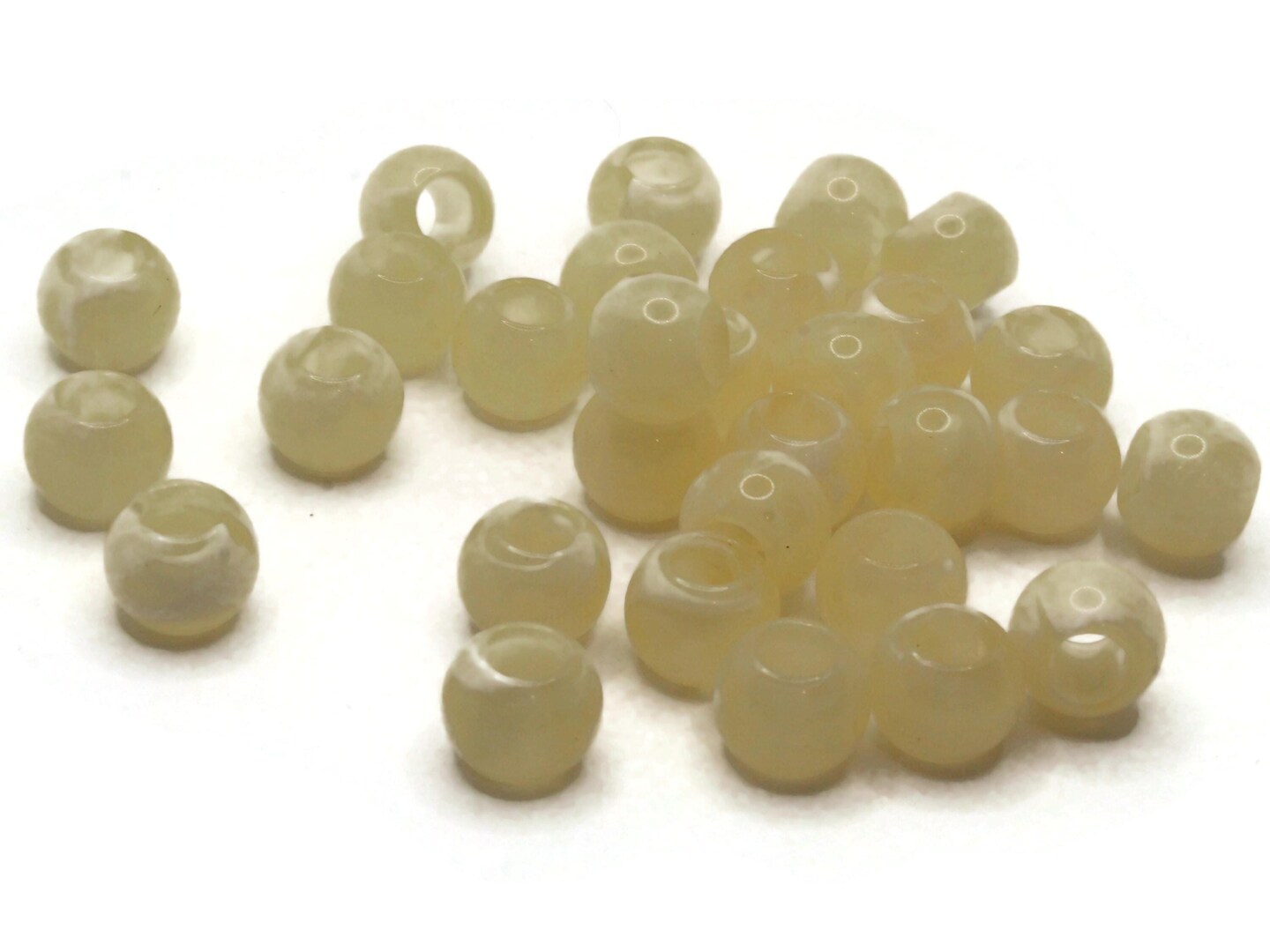 30 12mm Cream and White Swirl Large Hole Plastic Beads