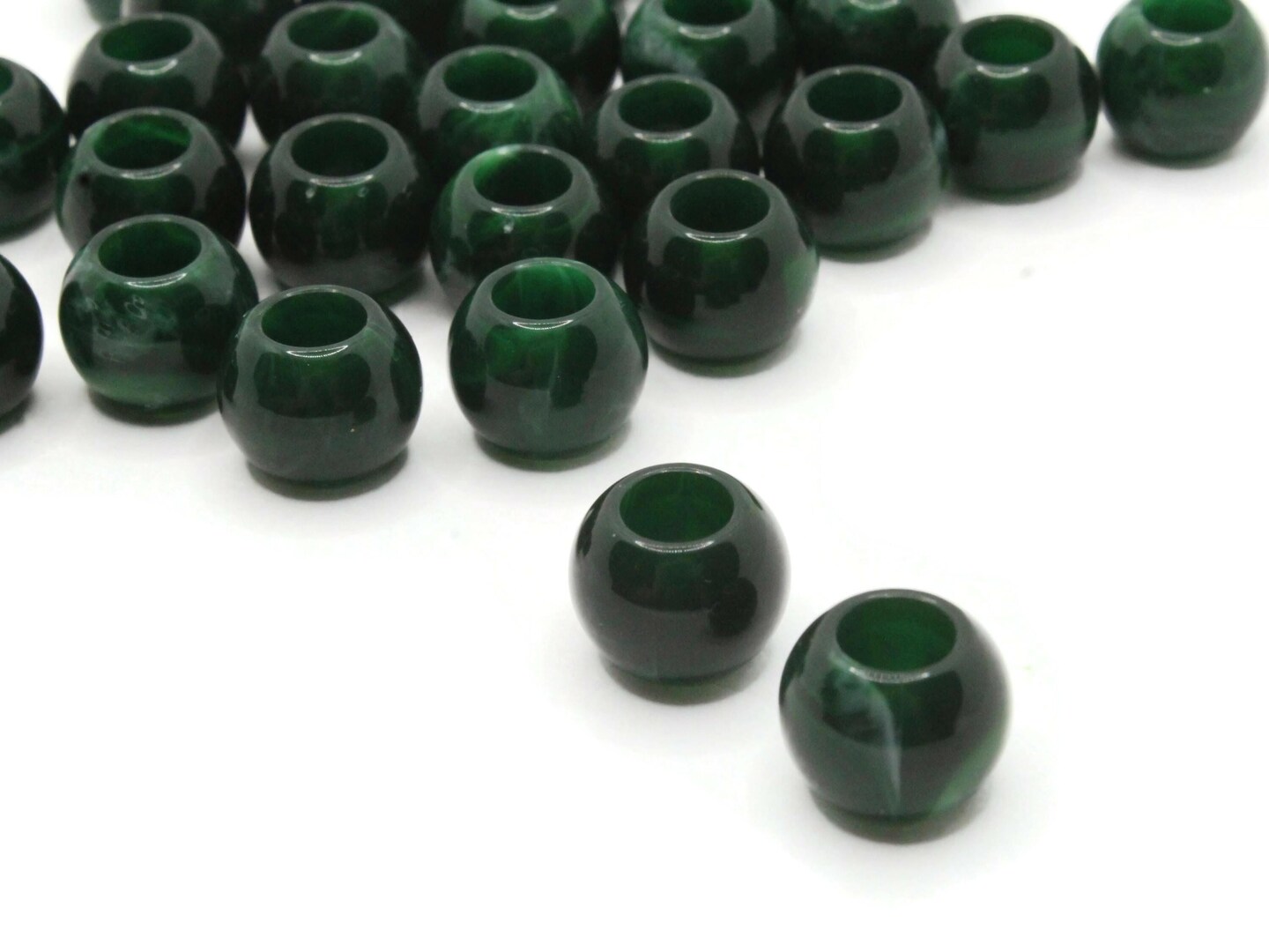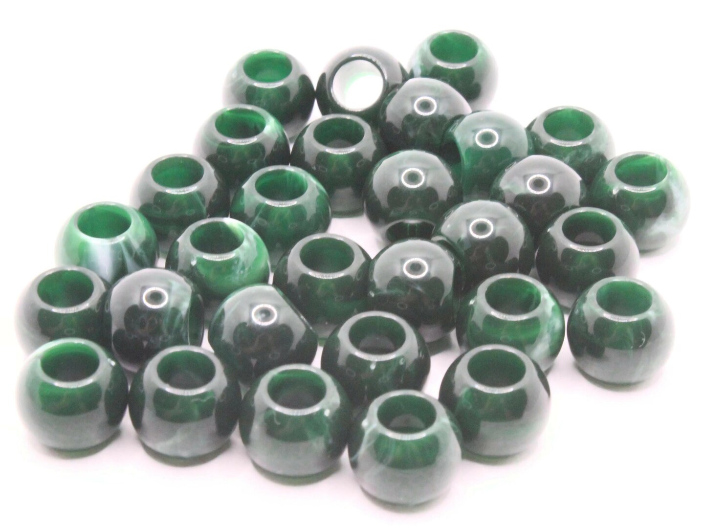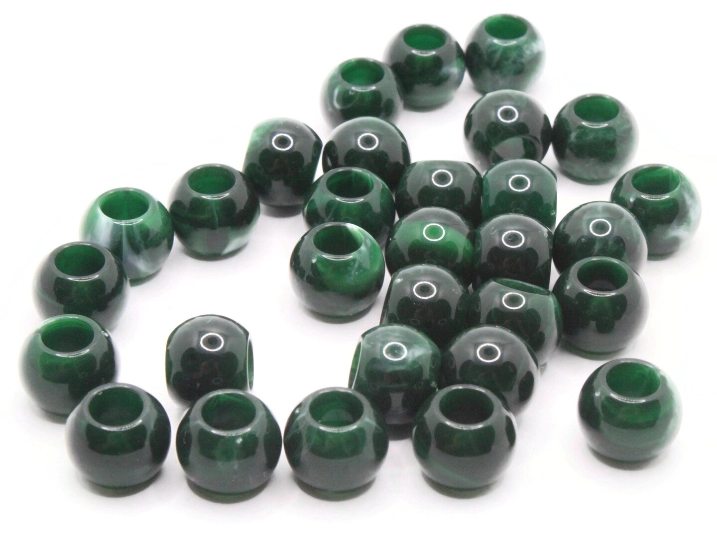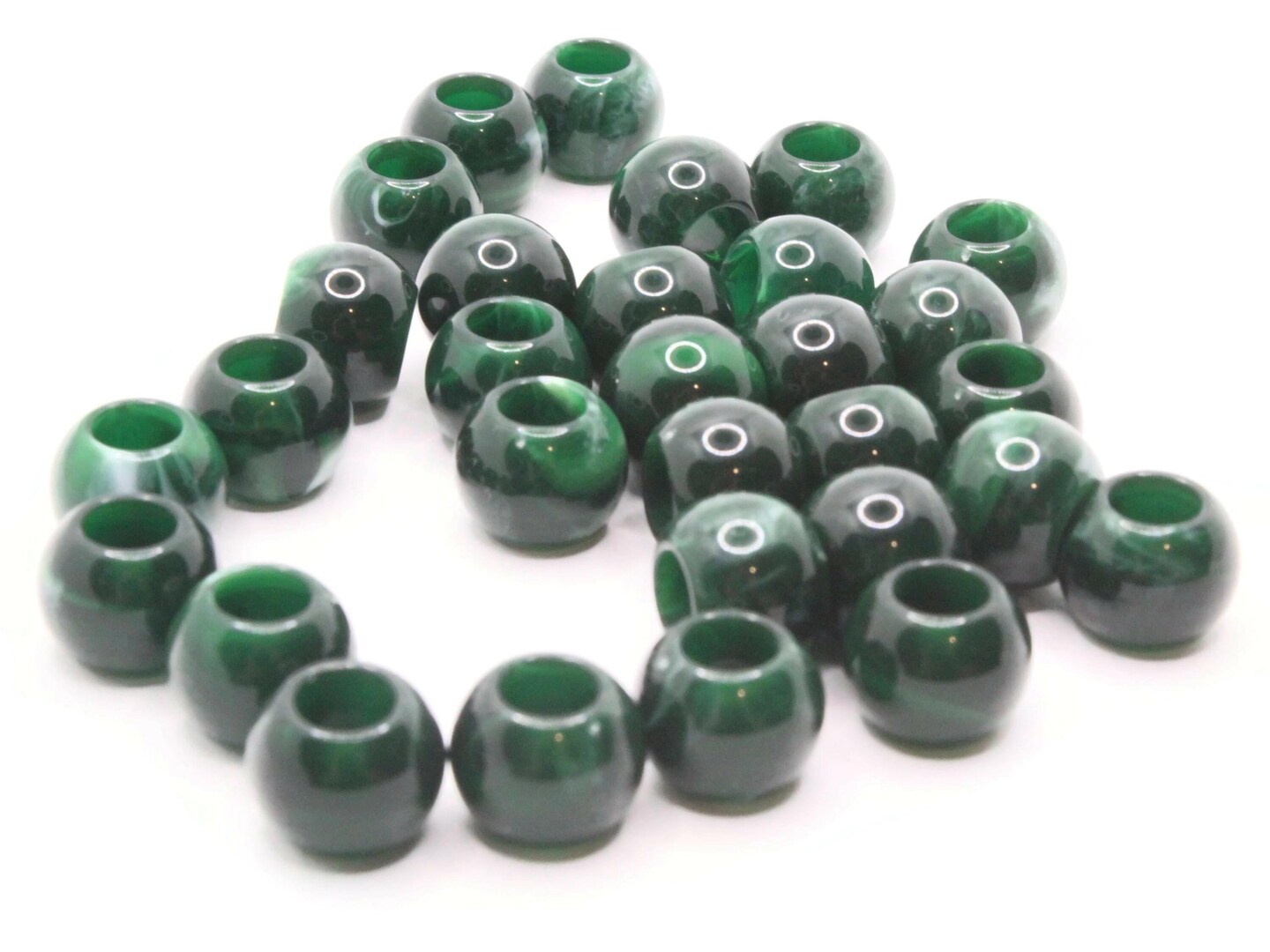 30 12mm Green and White Swirl Large Hole Round Plastic Beads