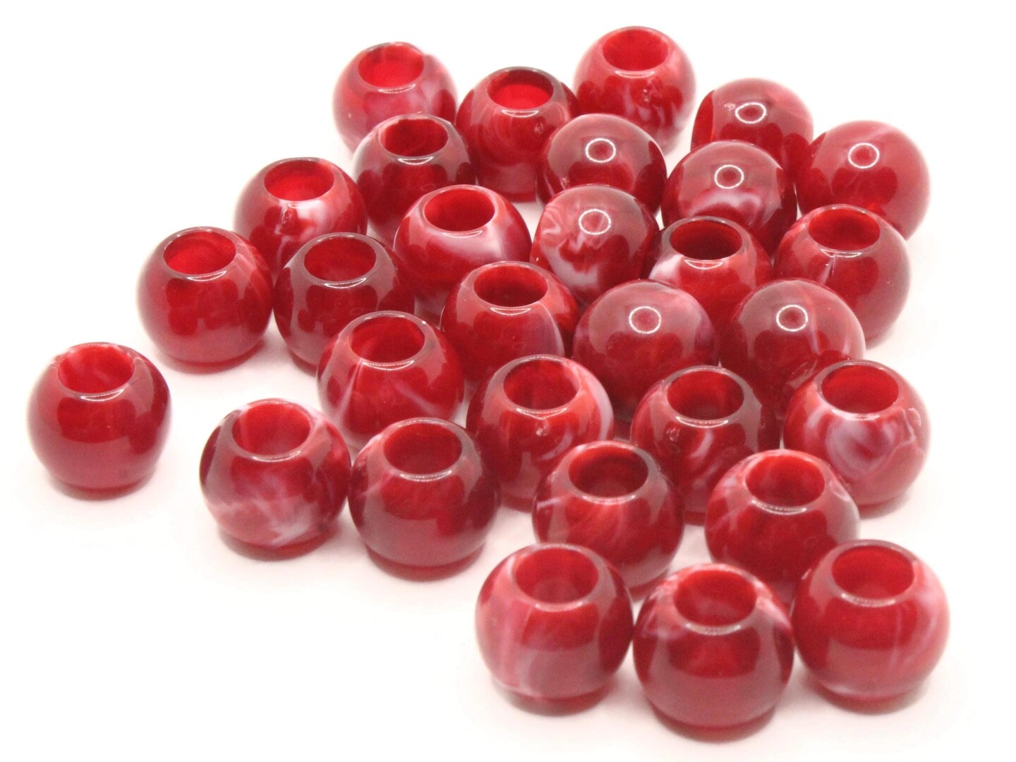 30 12mm Red and White Swirl Large Hole Round Plastic Beads bW1