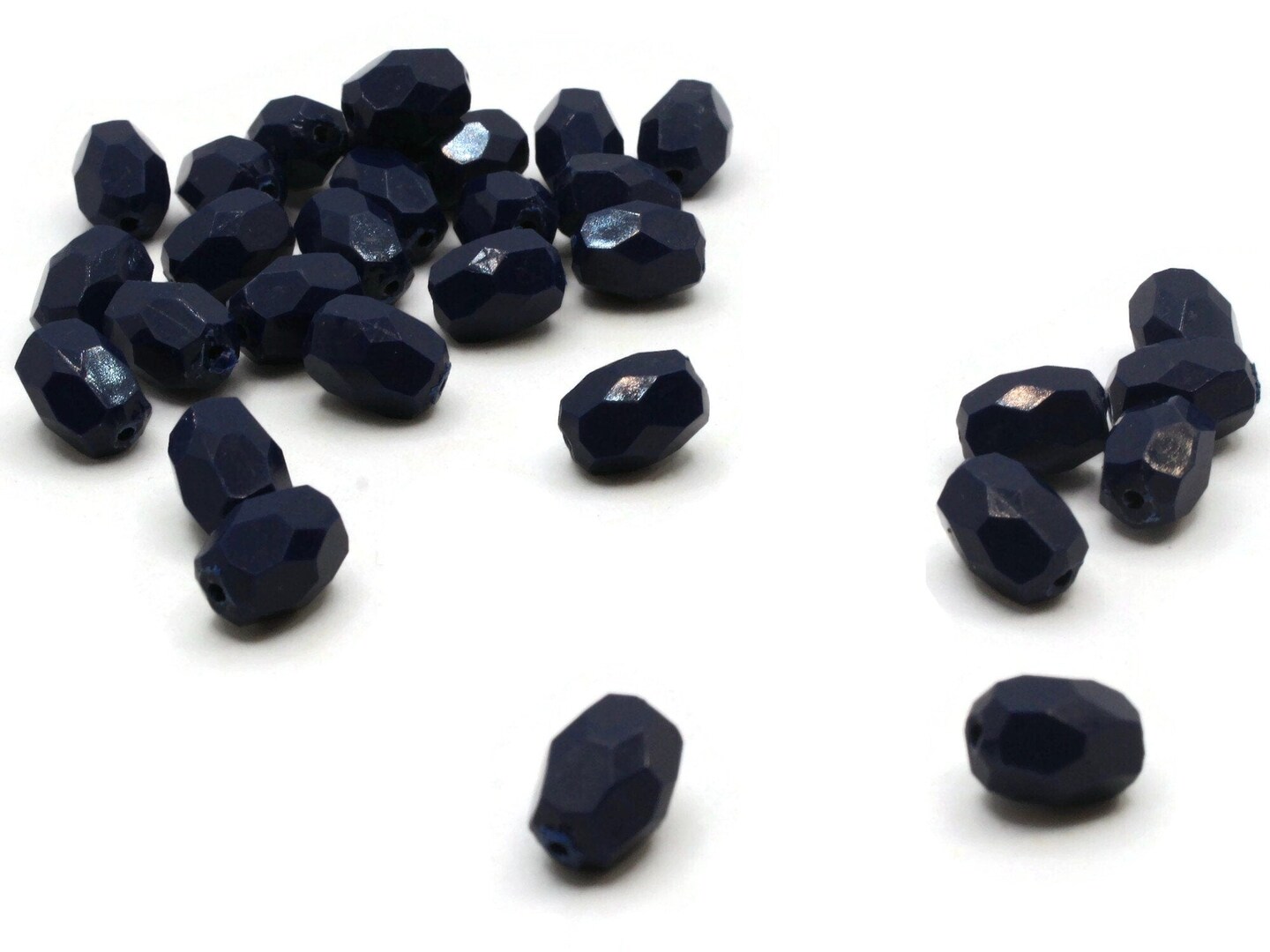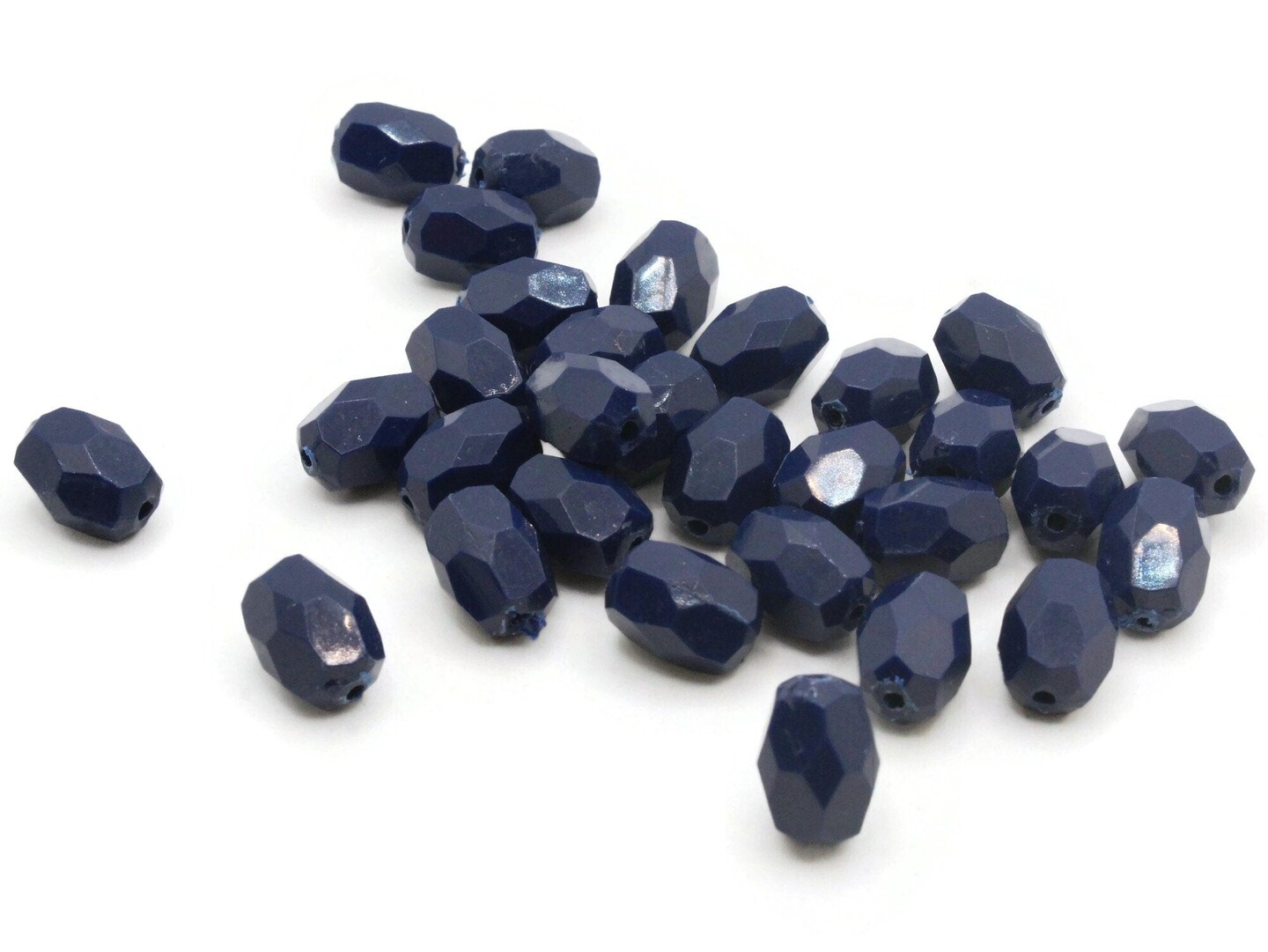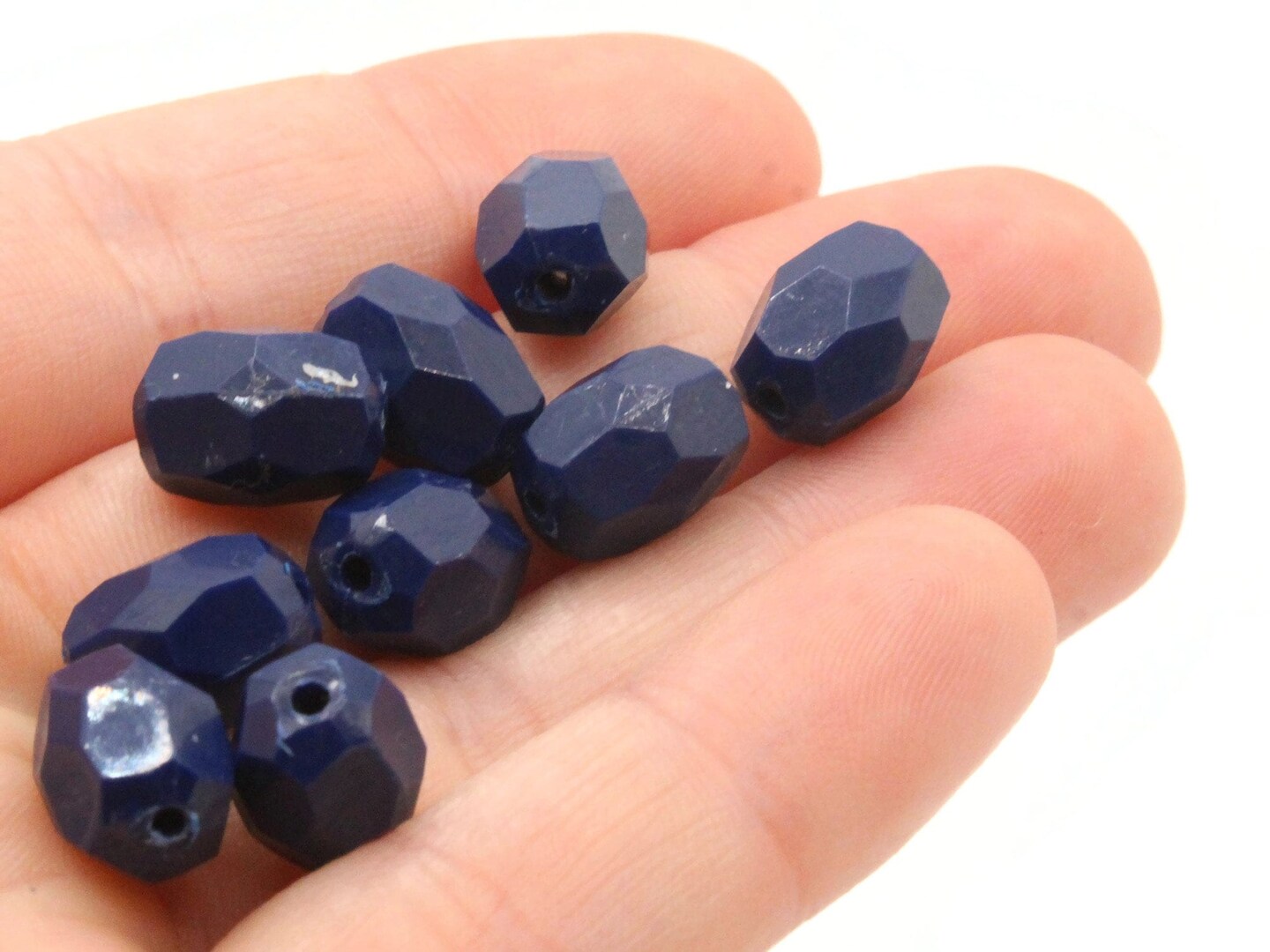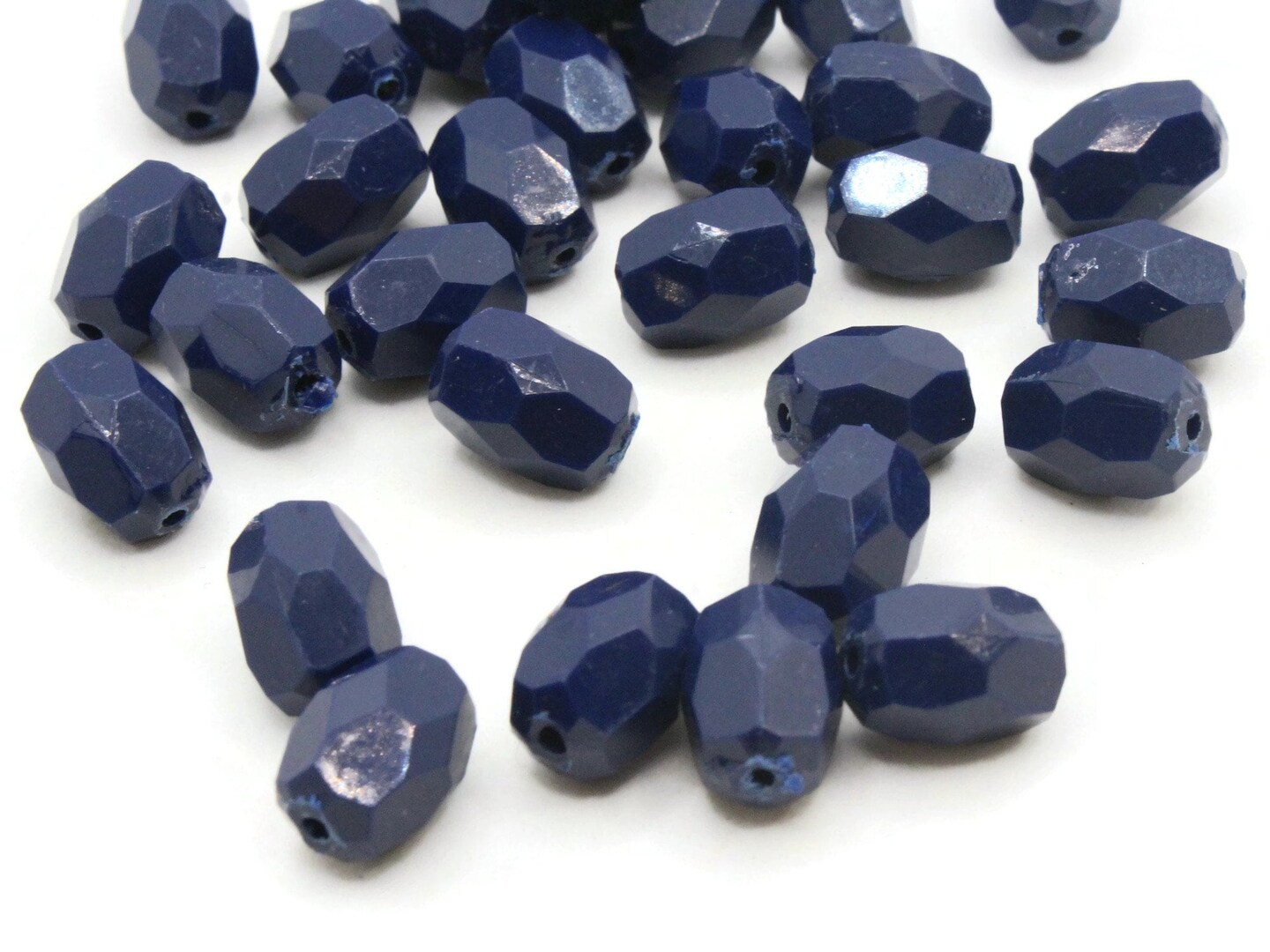 30 12mm Vintage Blue Faceted Oval Plastic Beads