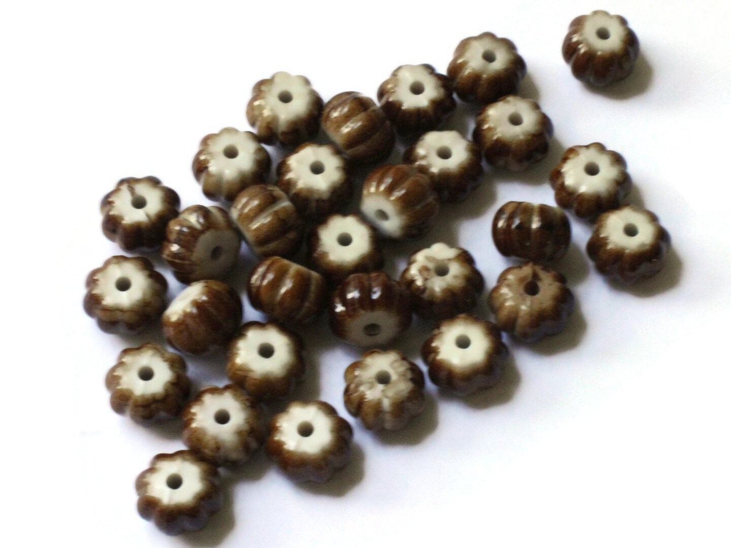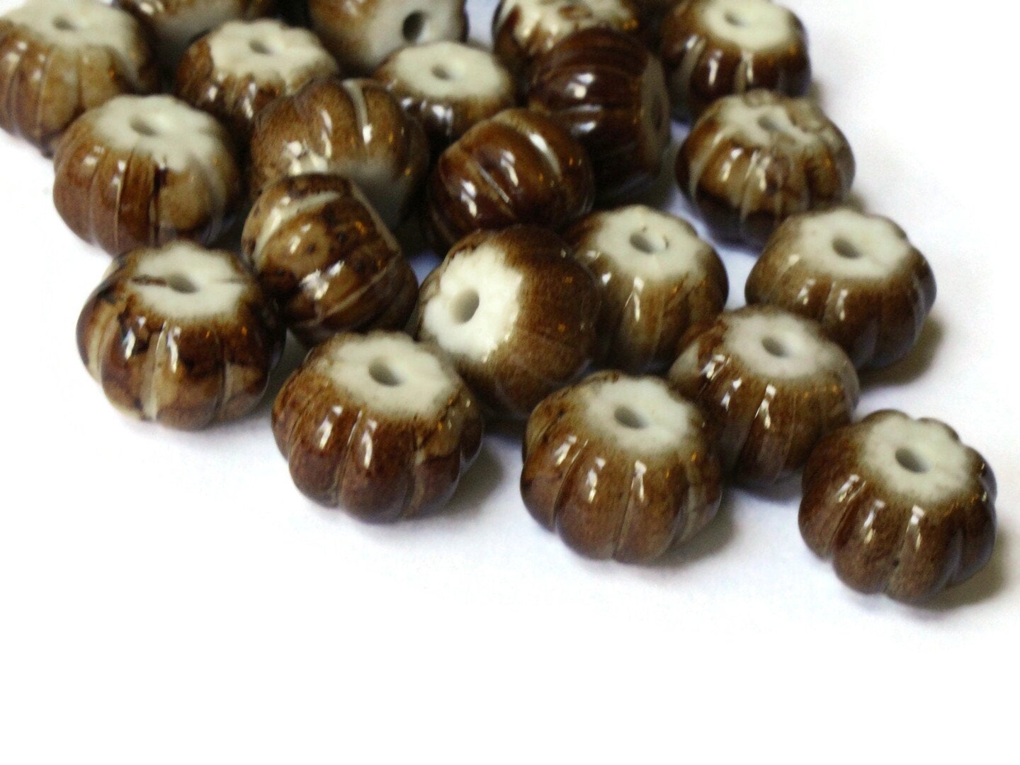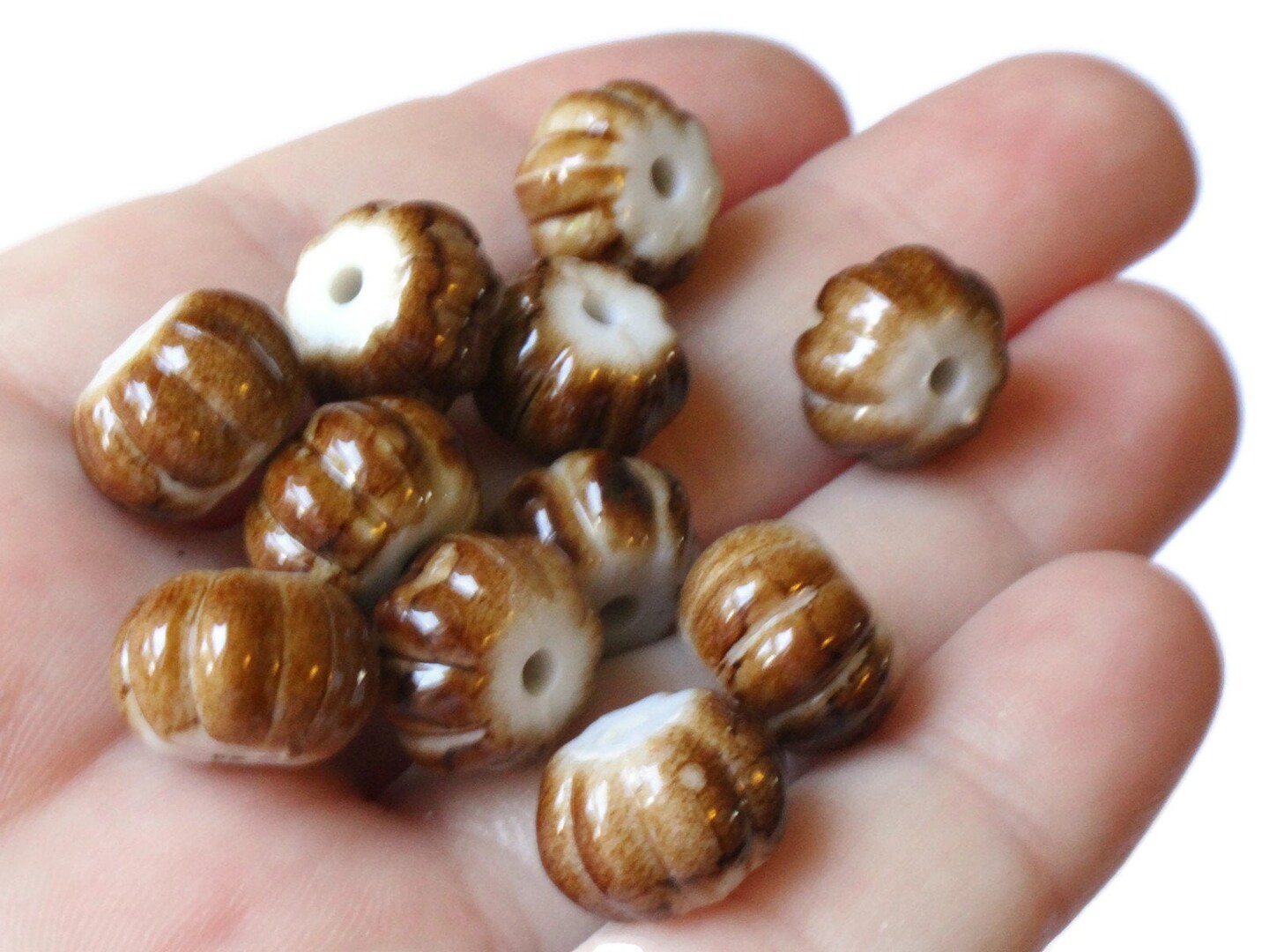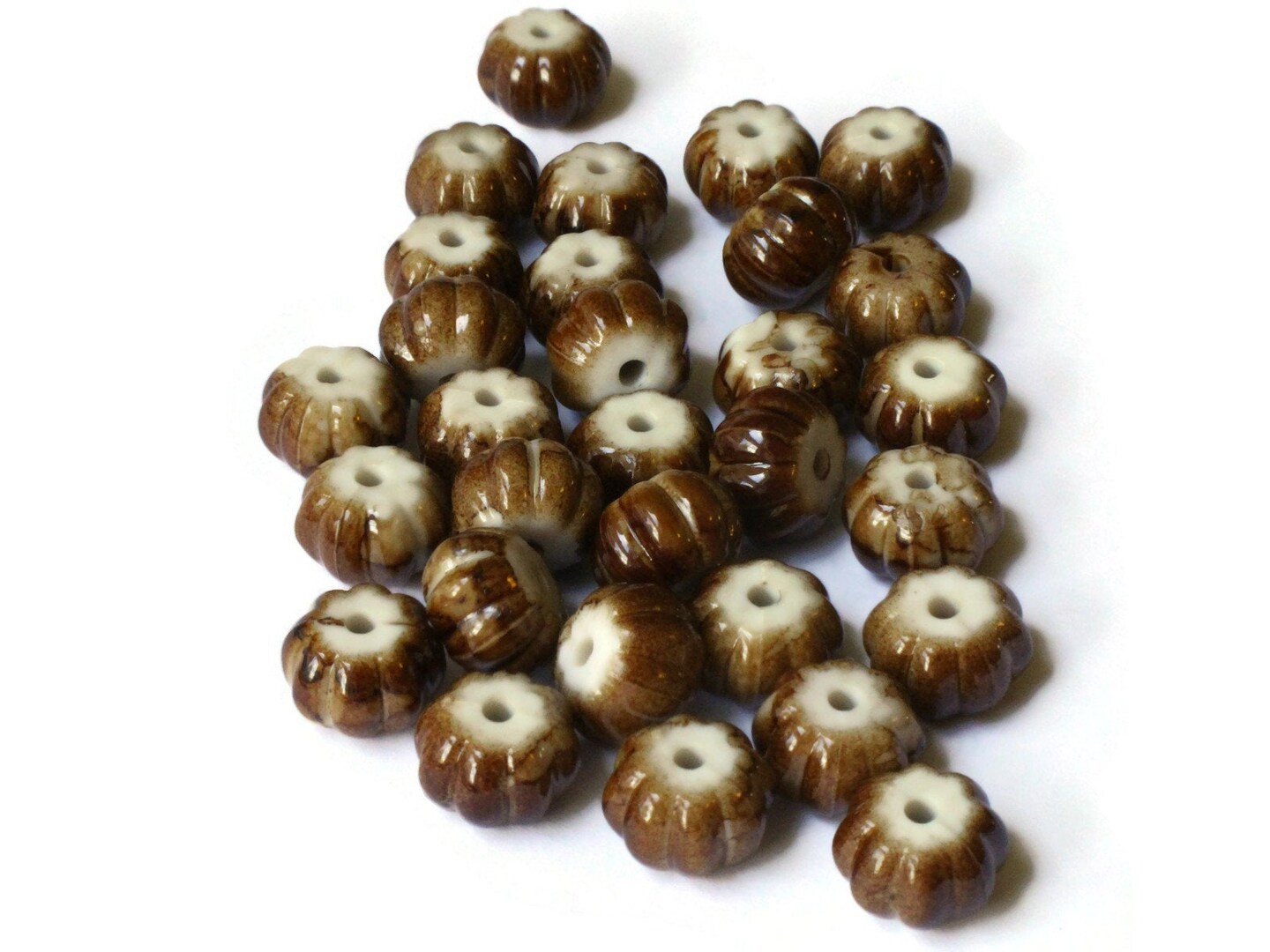 30 12mm x 8mm Brown Pumpkin Beads Fluted Rondelle Plastic Beads