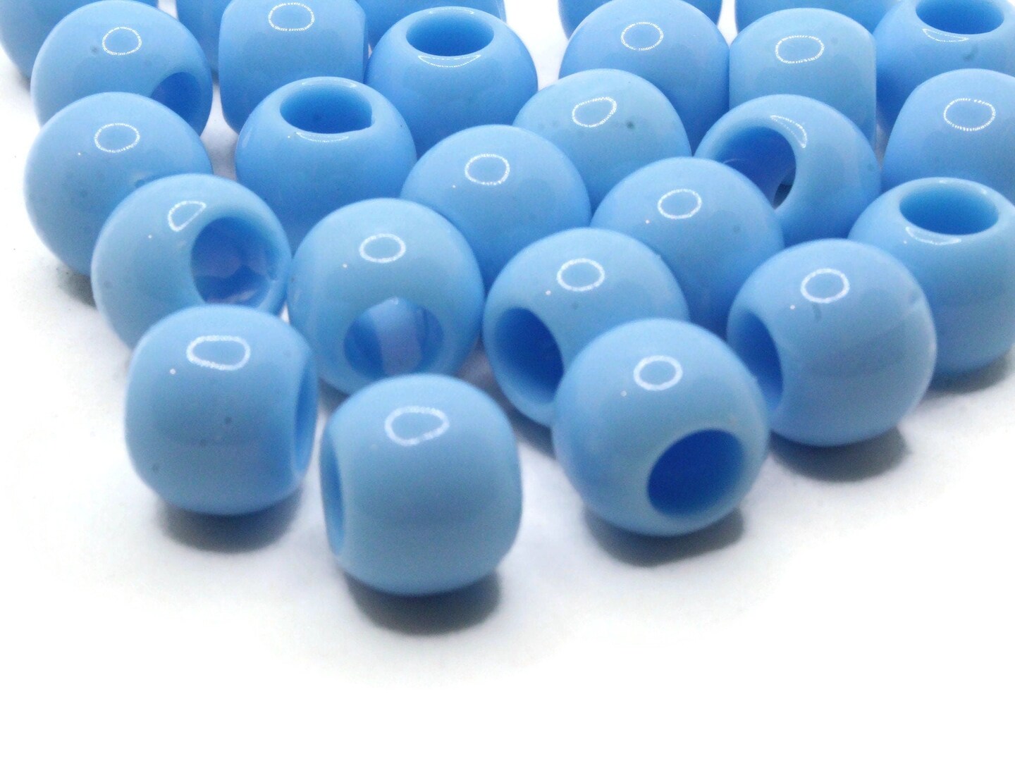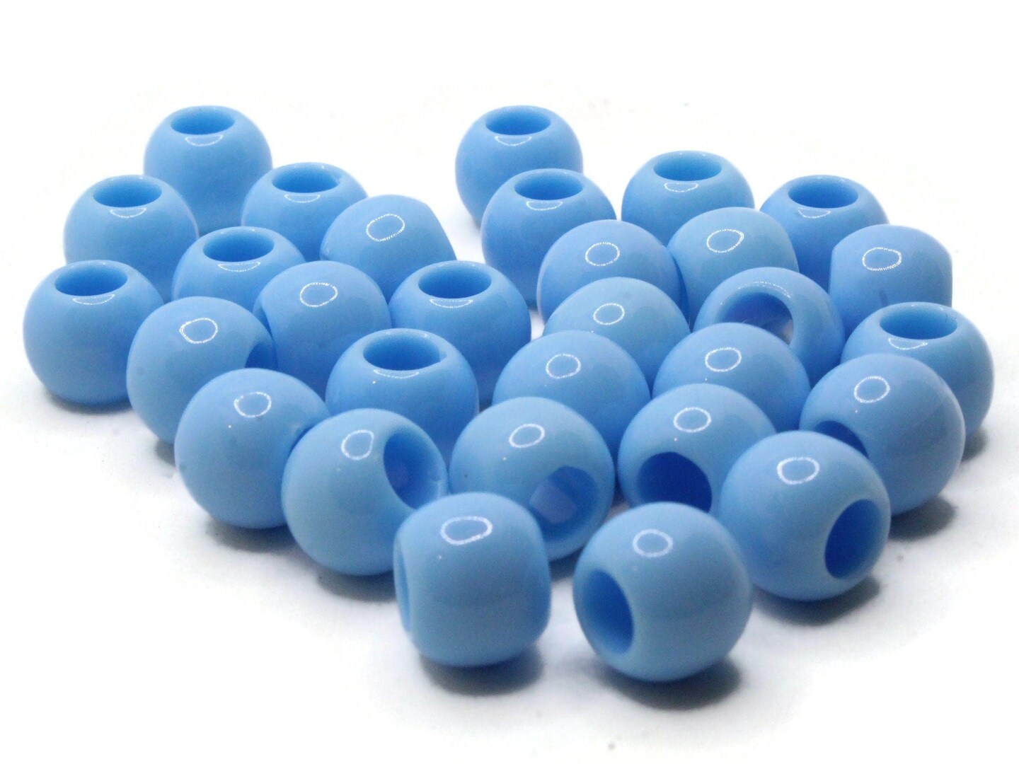 30 14mm Sky Blue Large Hole Round Plastic Beads