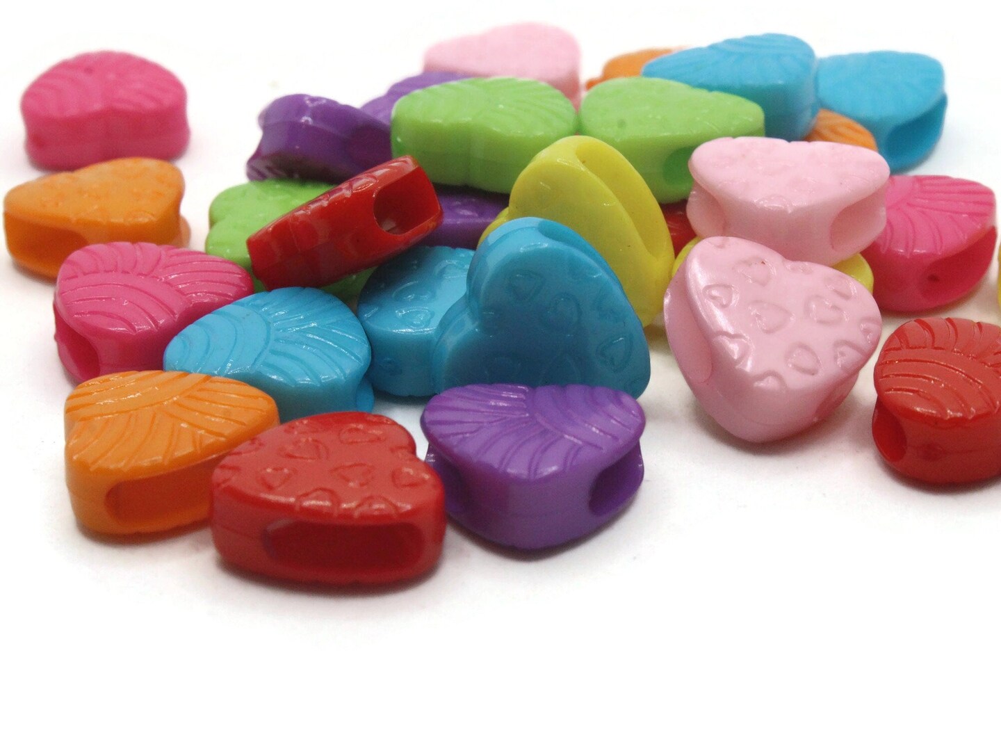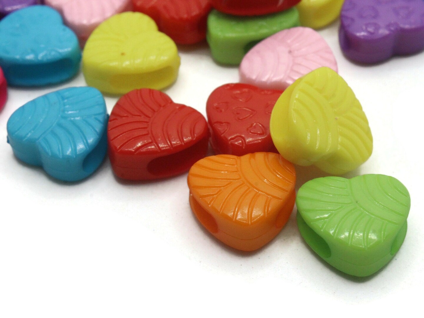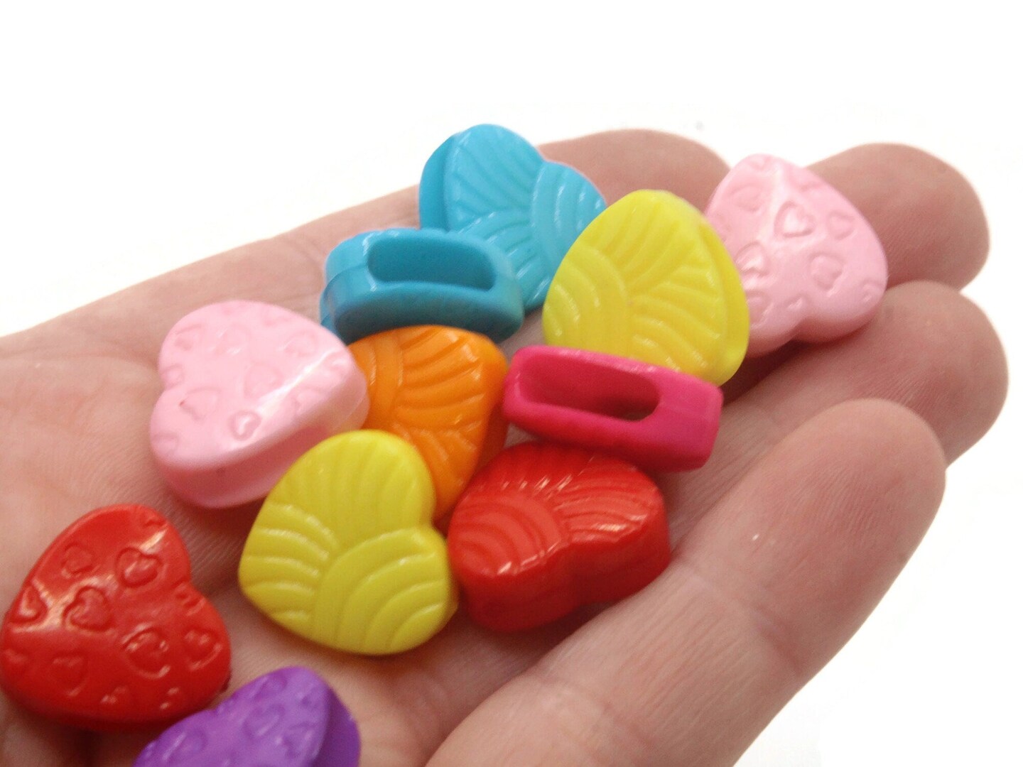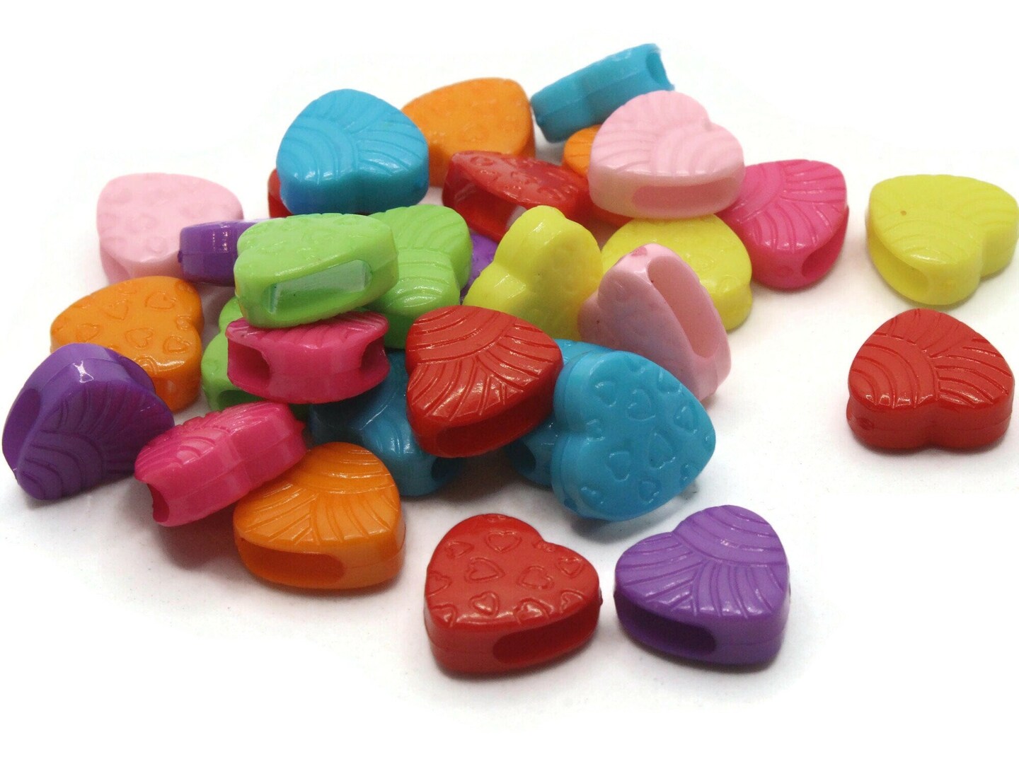 30 15mm Mixed Color Plastic Heart Large Hole Slide Beads