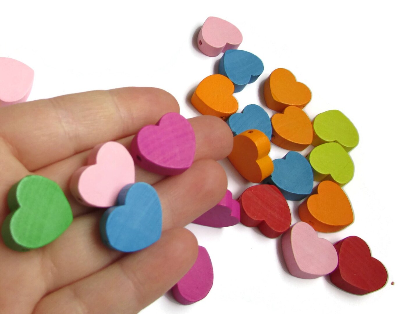 30 19mm Mixed Color Wooden Heart Beads