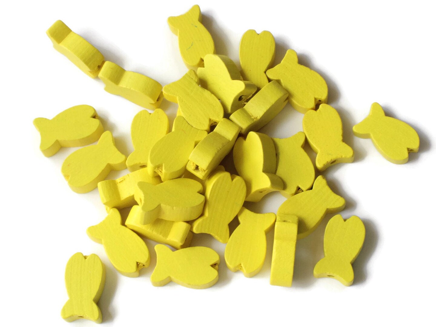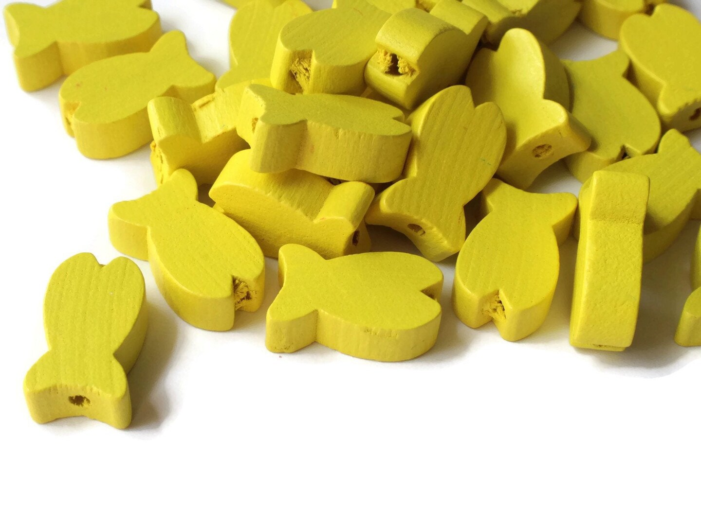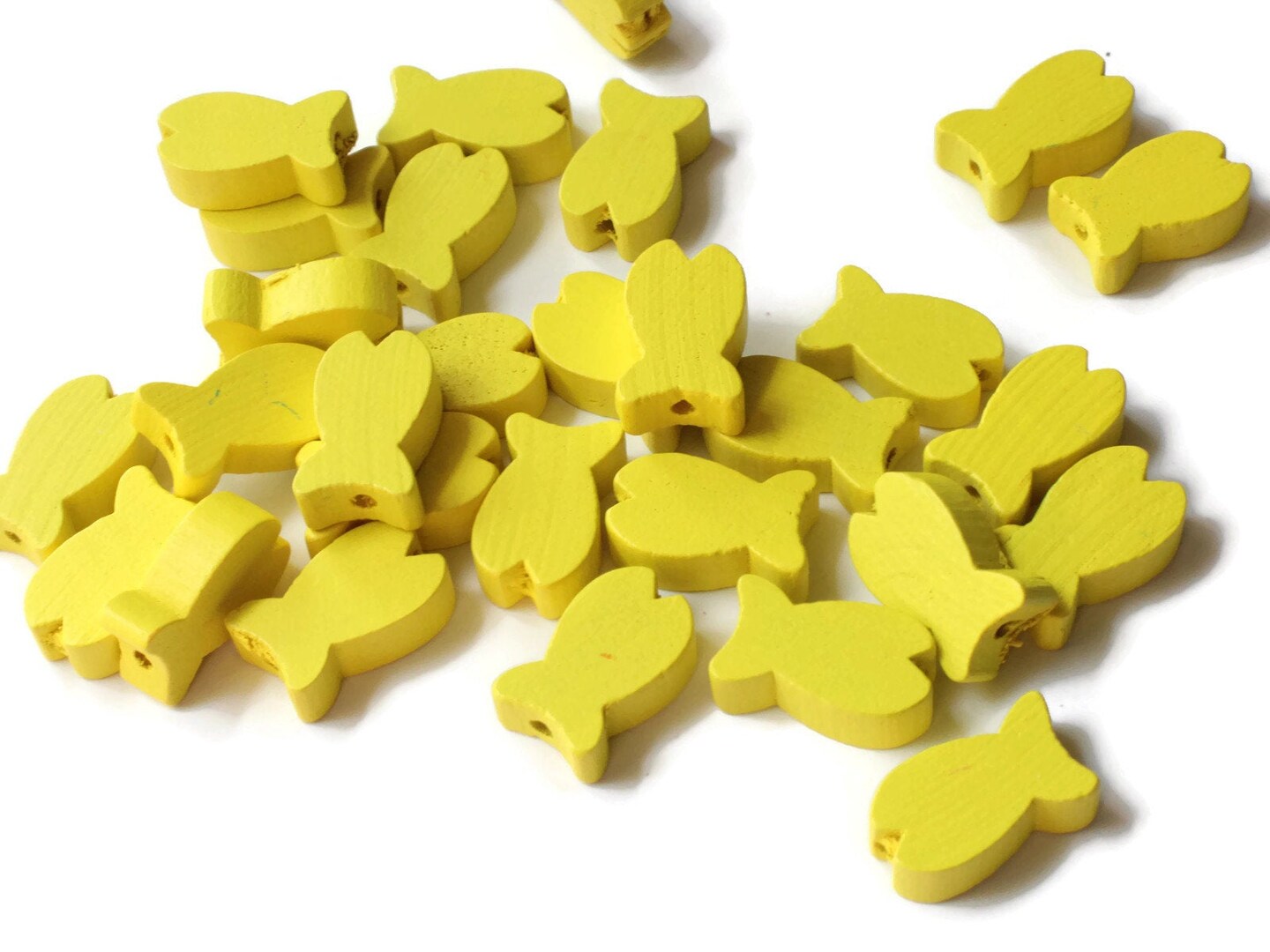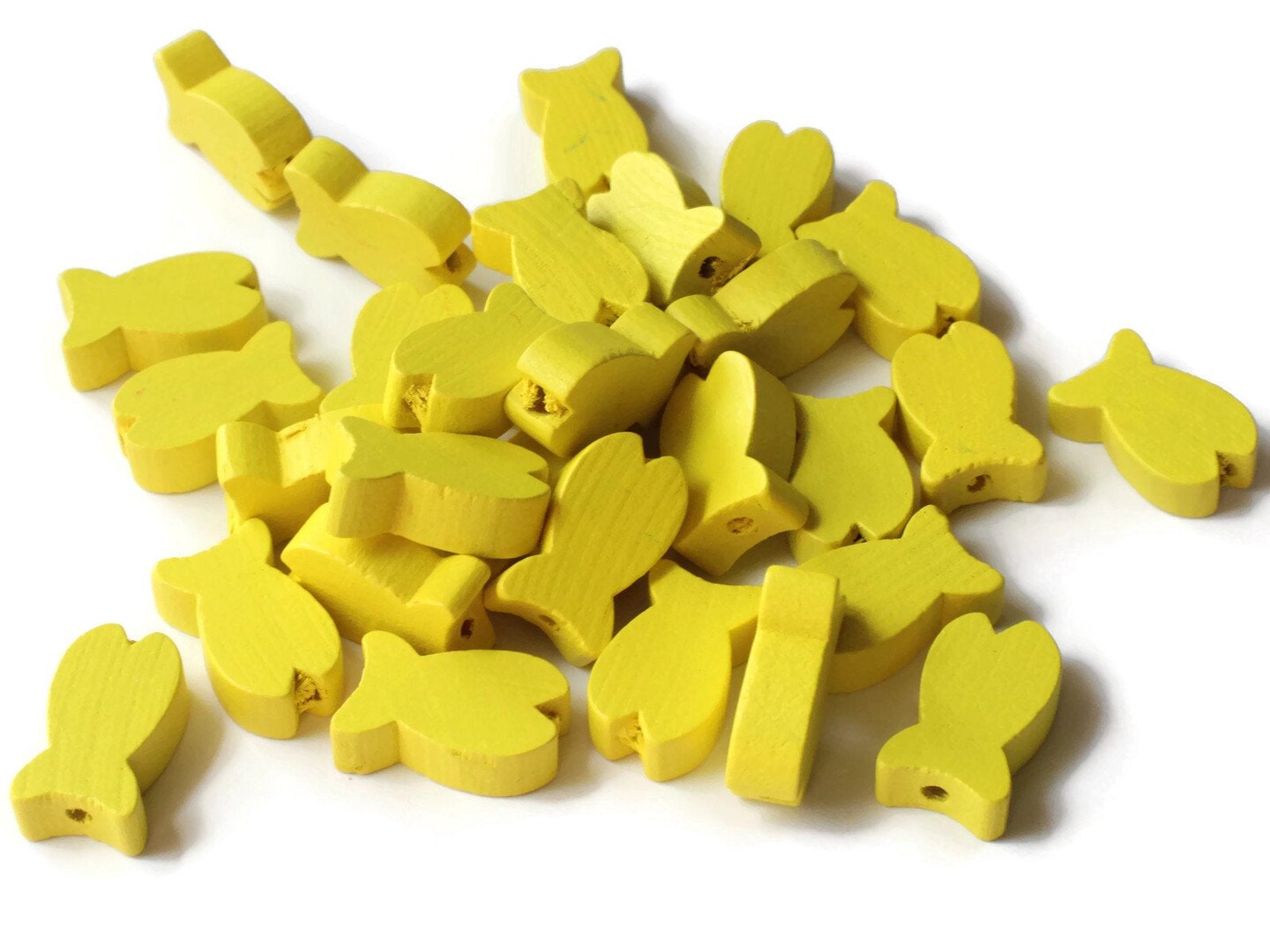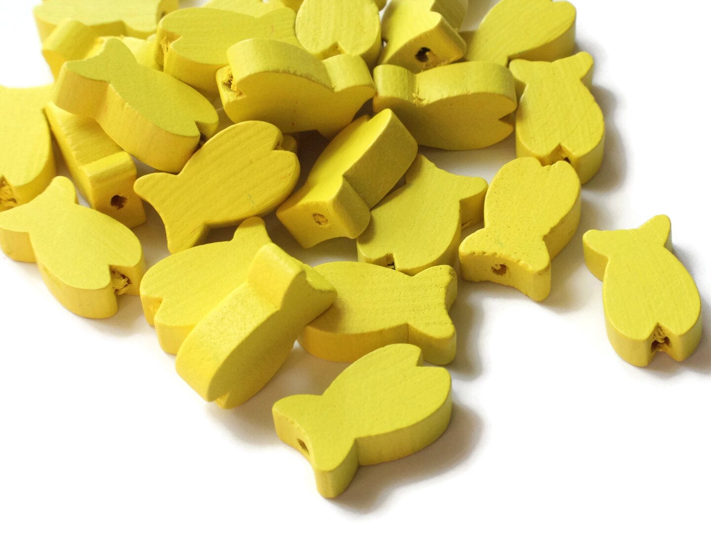 30 19mm Yellow Fish Beads Wooden Fish Beads Wood Animal Beads