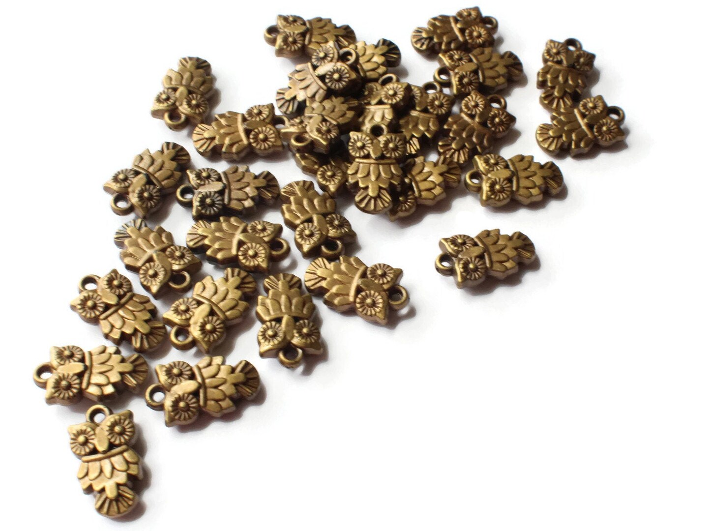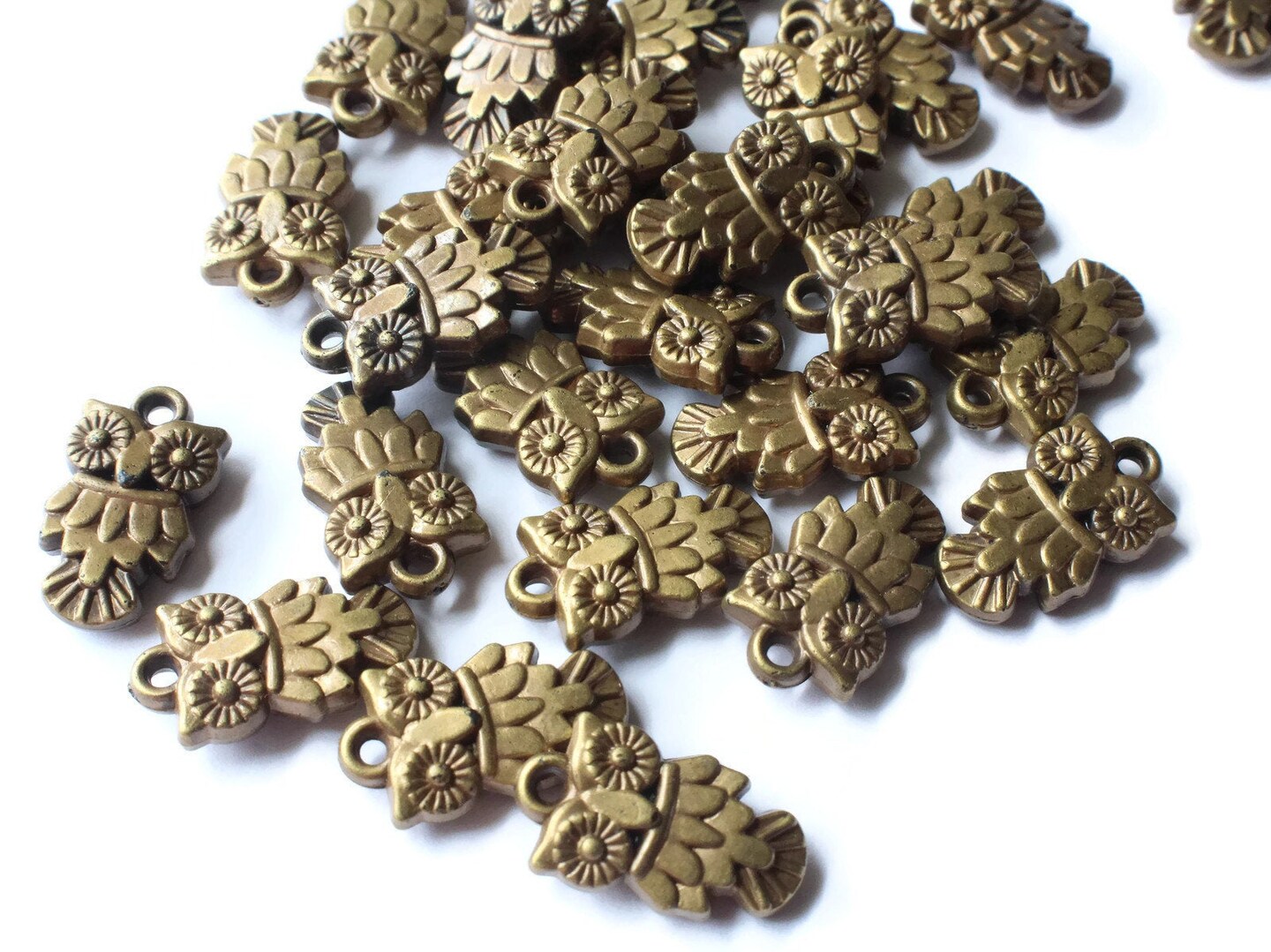 30 20mm Owl Charms Bronze Tone Plastic Charms Lightweight 2 sided Bird Charms