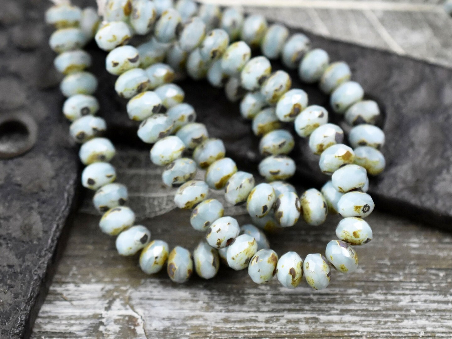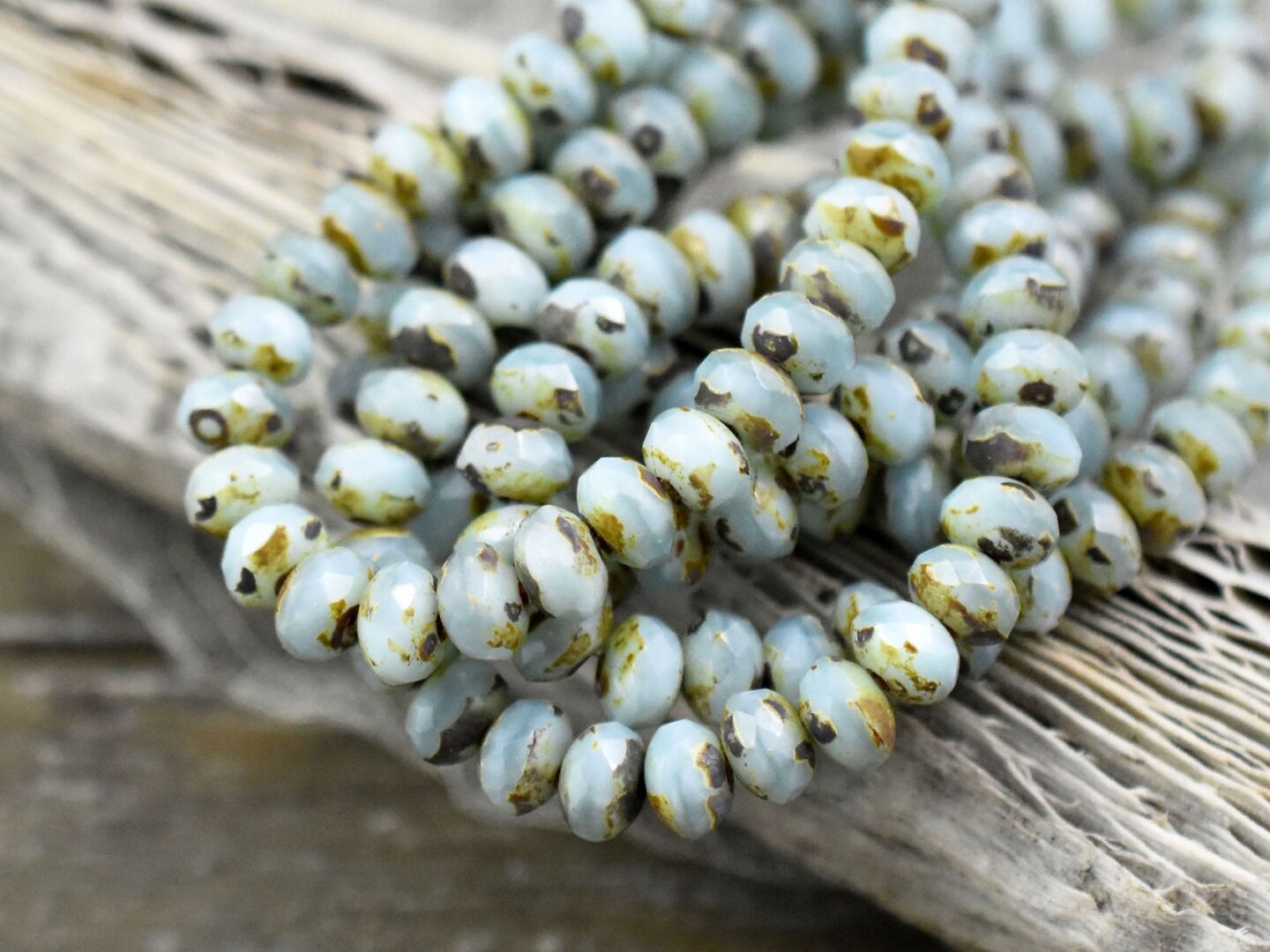 *30* 3x5mm Sky Blue Silk Picasso Fire Polished Rondelle Beads