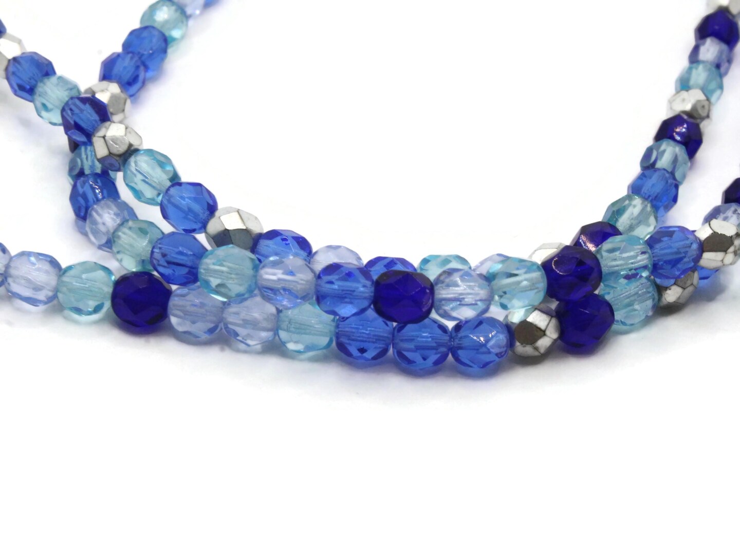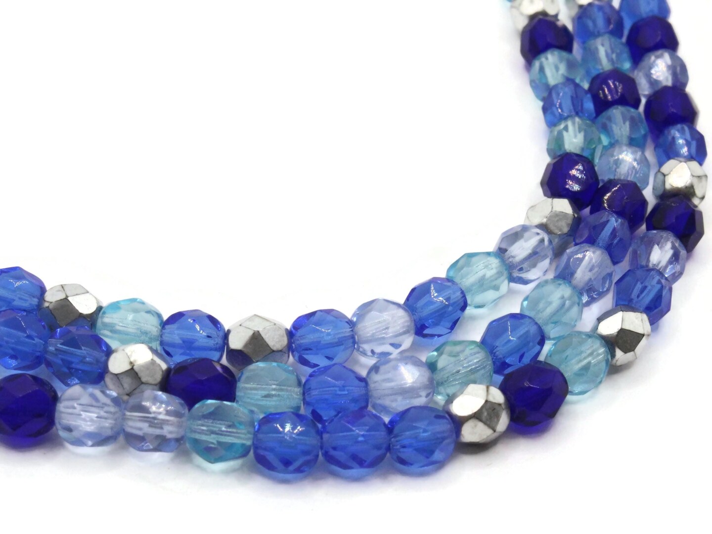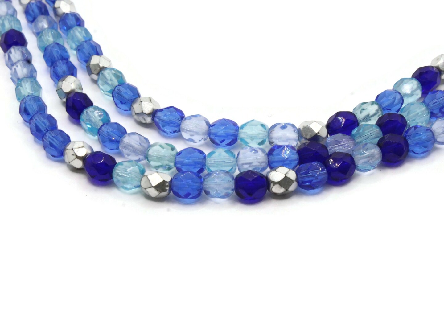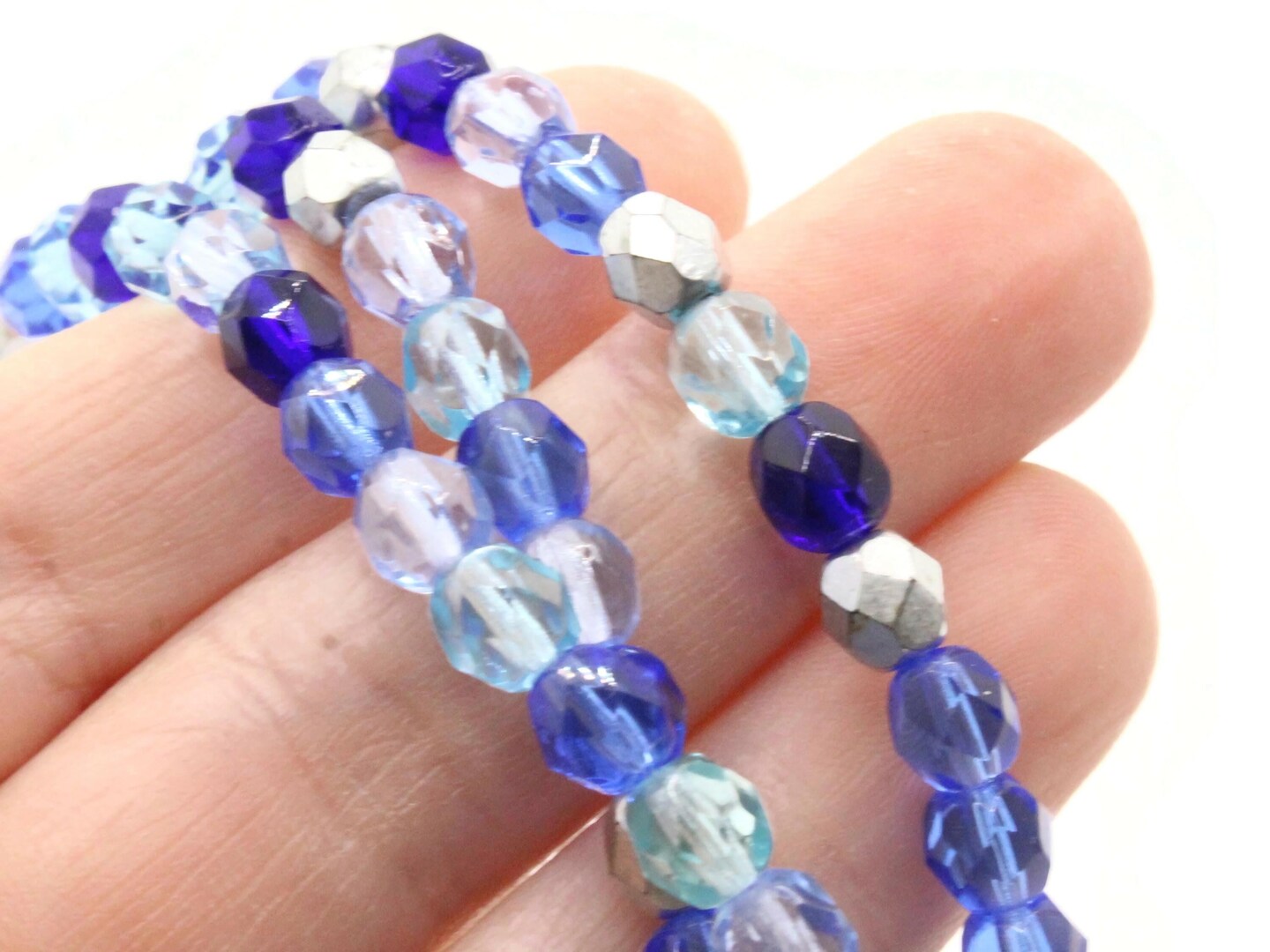 30 6mm Faceted Round Mixed Blue Glass Beads