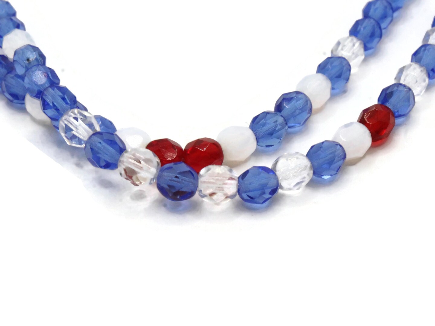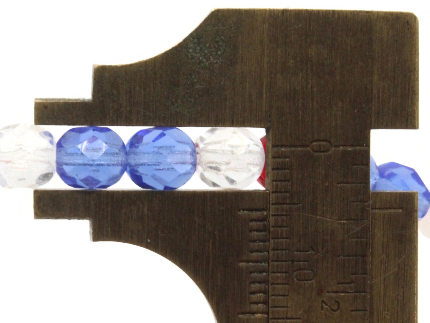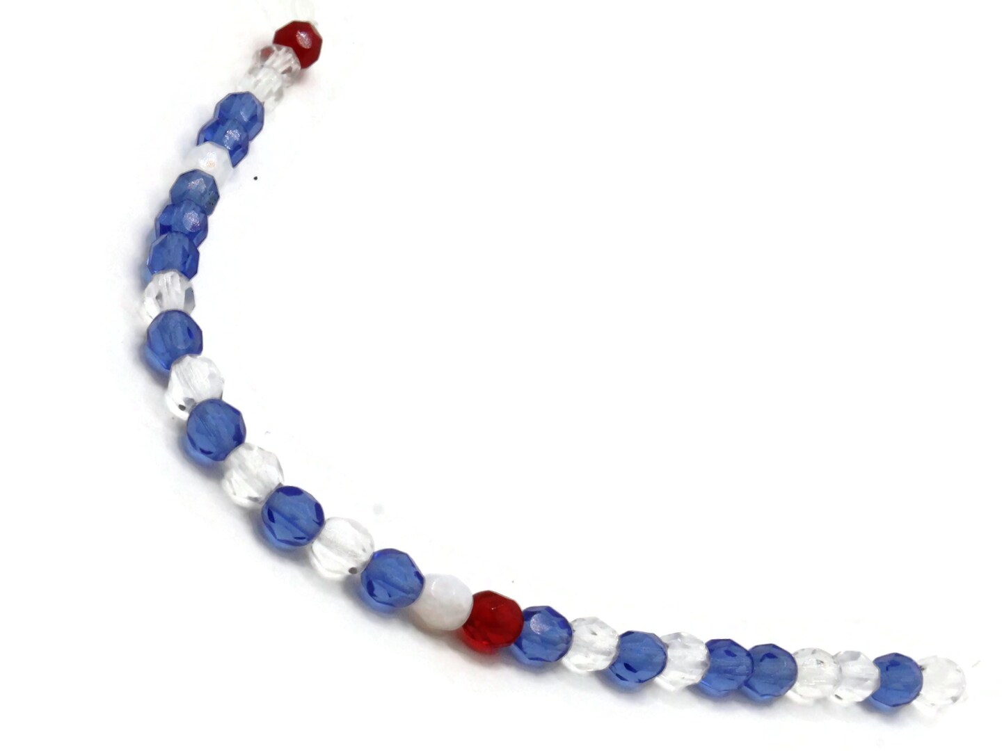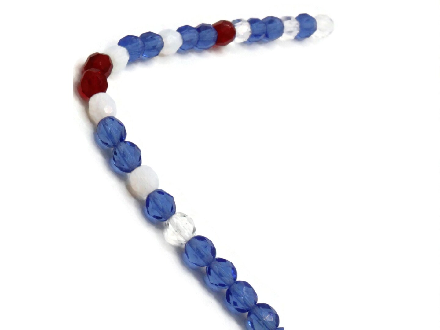 30 6mm Faceted Round Mixed Red White and Blue Glass Beads