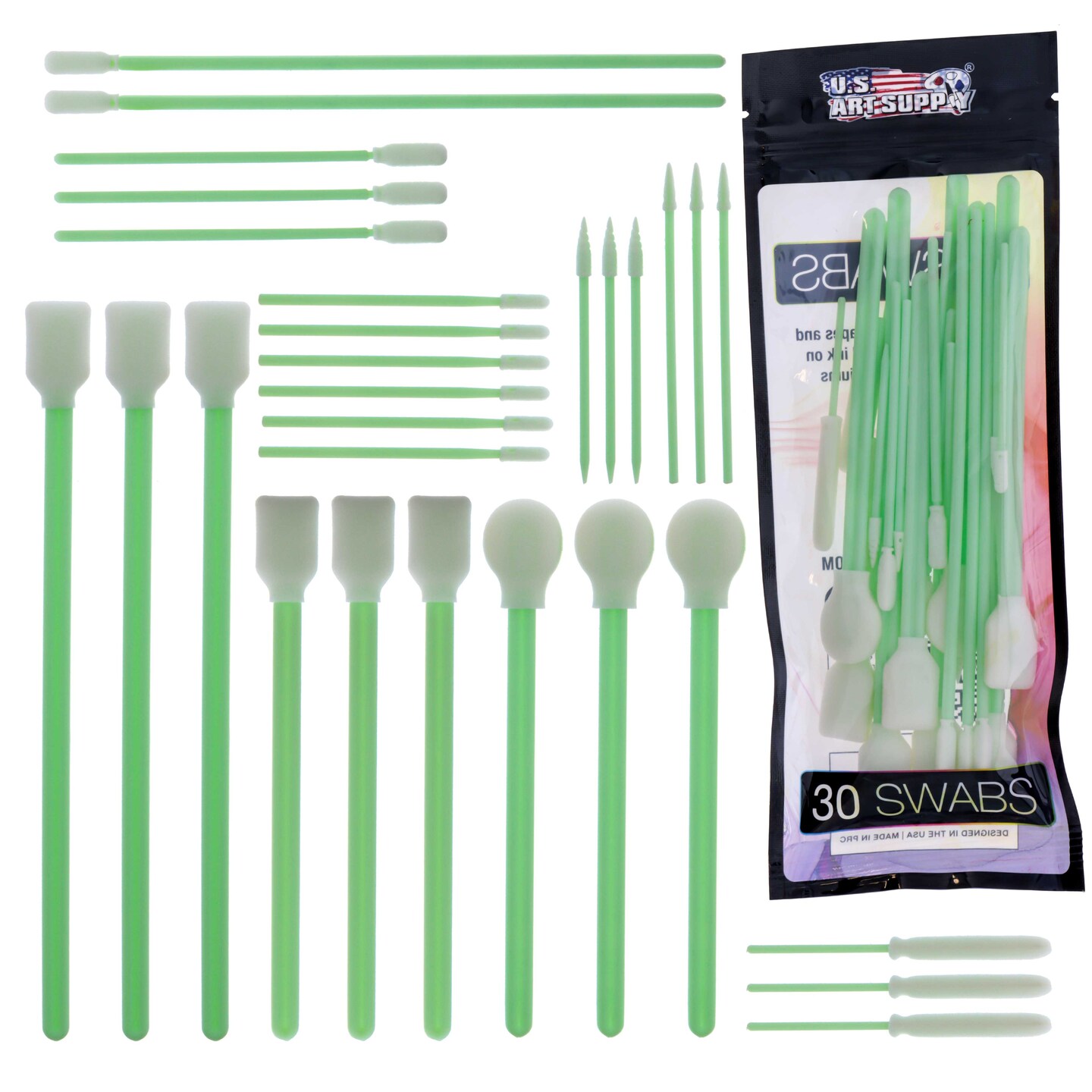 30 Alcohol Ink Blending Swabs - Foam Tip Brushes, Assorted Shapes & Sizes - Mixing, Blending, Lift Ink, Dye, Paint, Draw, Yupo Paper