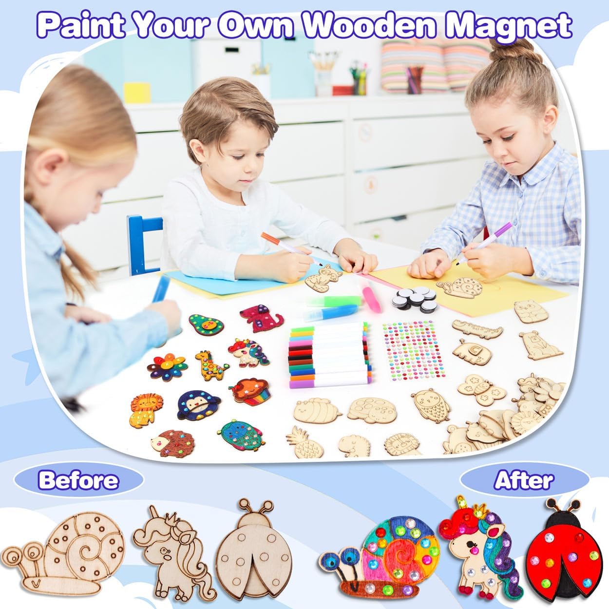 30 Art Projects Fun Activities Wooden Magnets to Paint