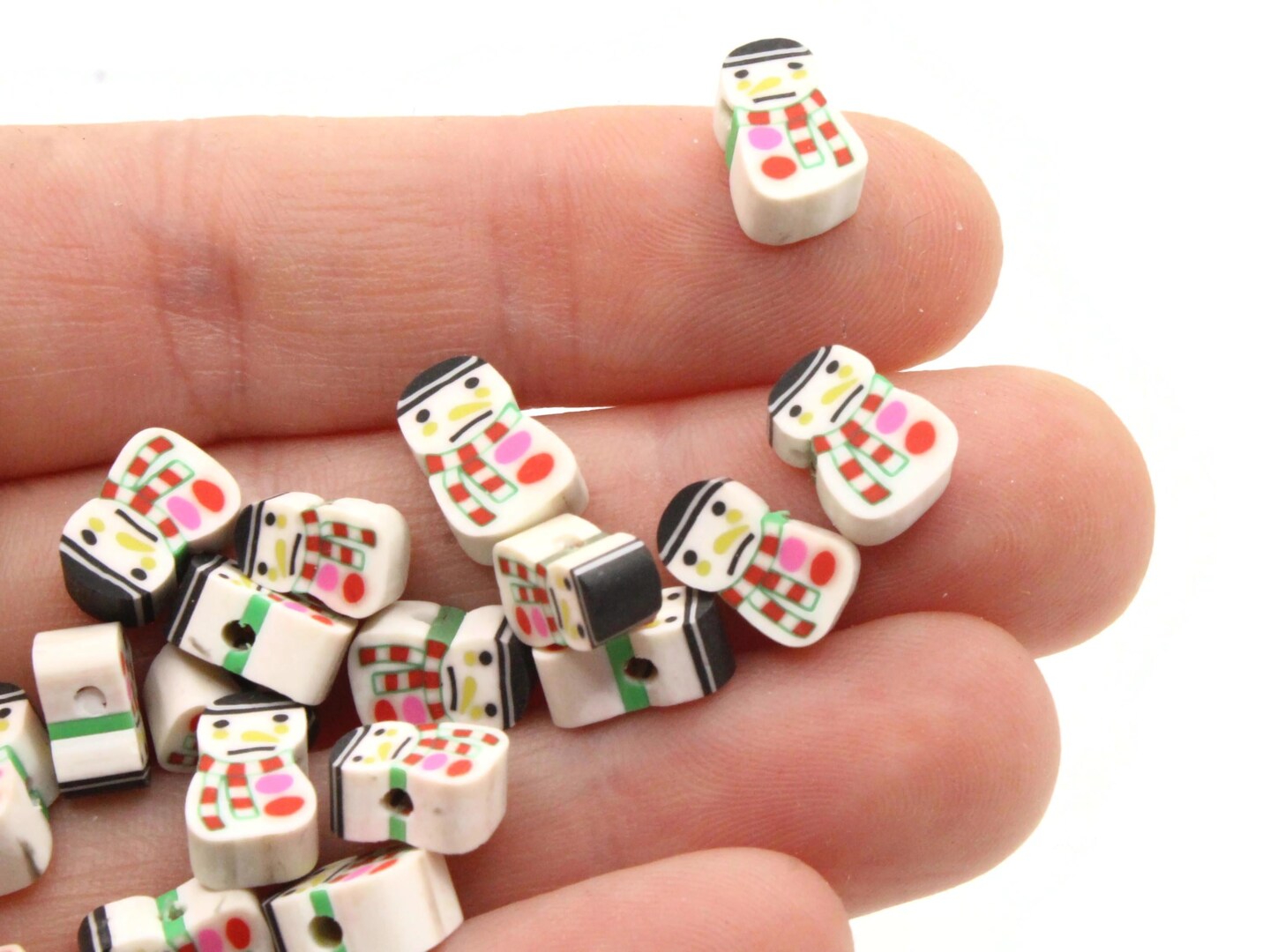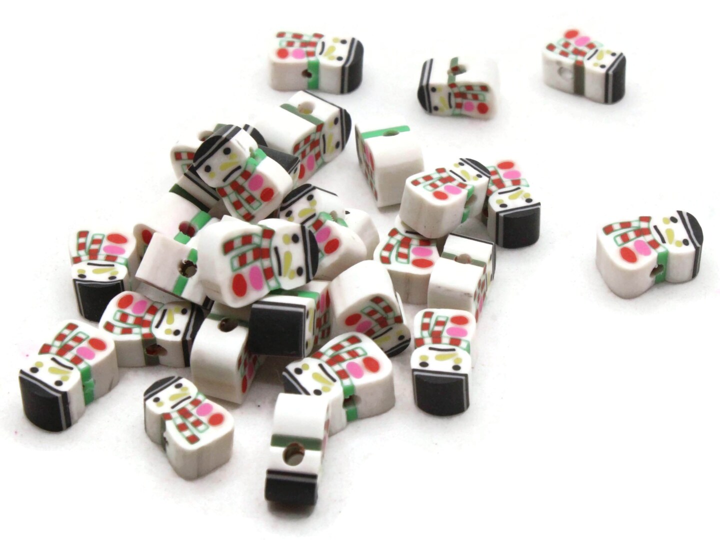 30 Clay Snowmen Polymer Clay White Christmas Beads