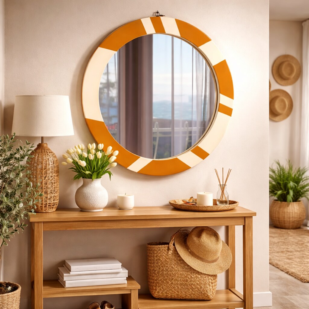 30" Decorative Round Golden & Ivory Wall Mirror