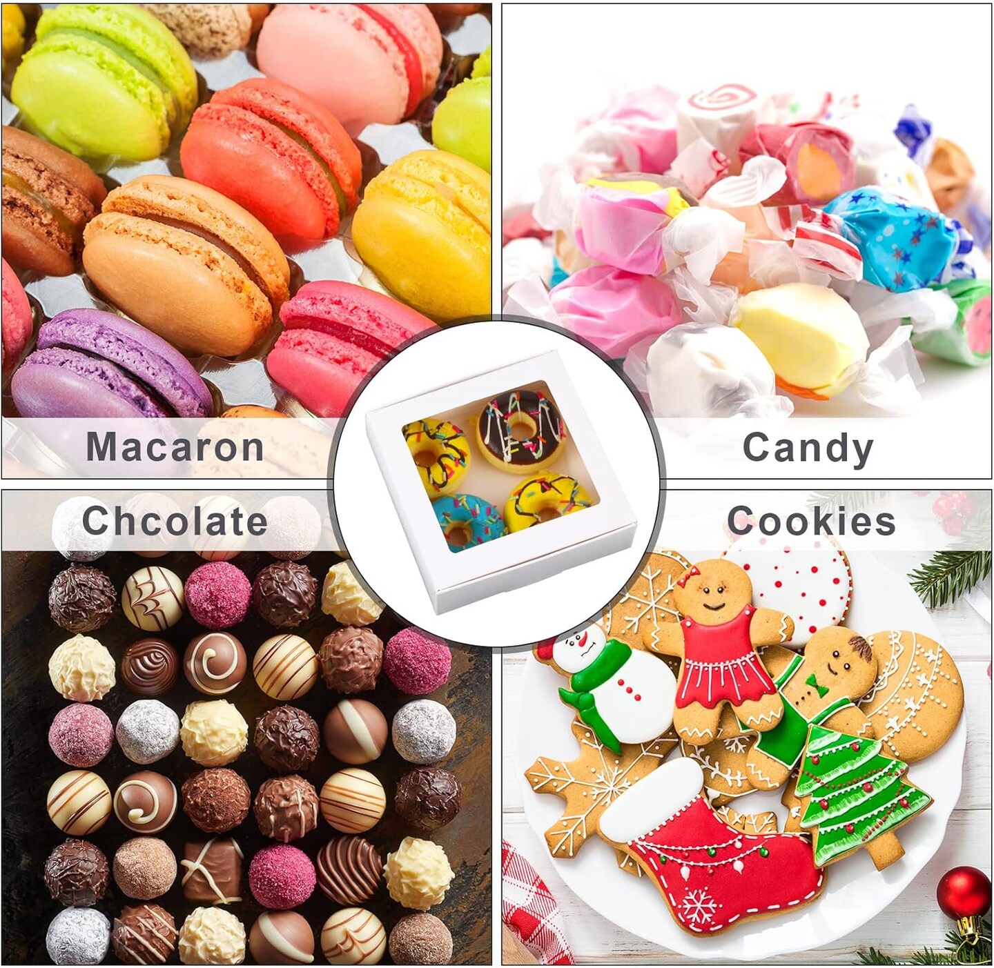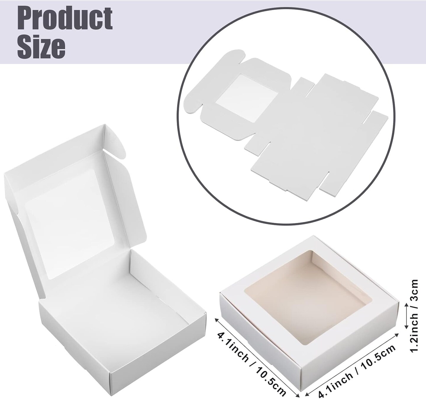 30 Kraft Paper Boxes with Window 4.13 x 4.13 x 1.18 Inch Candy Packaging, Small Gift Boxes, Soap holder, Mini Treat Packaging for Bakery Chocolate Jewelry Display(White)