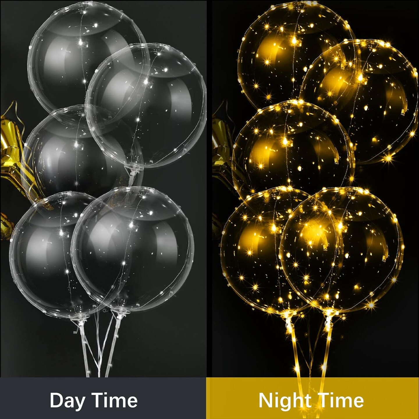 30 Pack LED Bobo Balloons Light Up Balloons Clear Helium Bubble Bobo Glow with String Lights for Parties Birthday Wedding Decoration(Warm Light)
