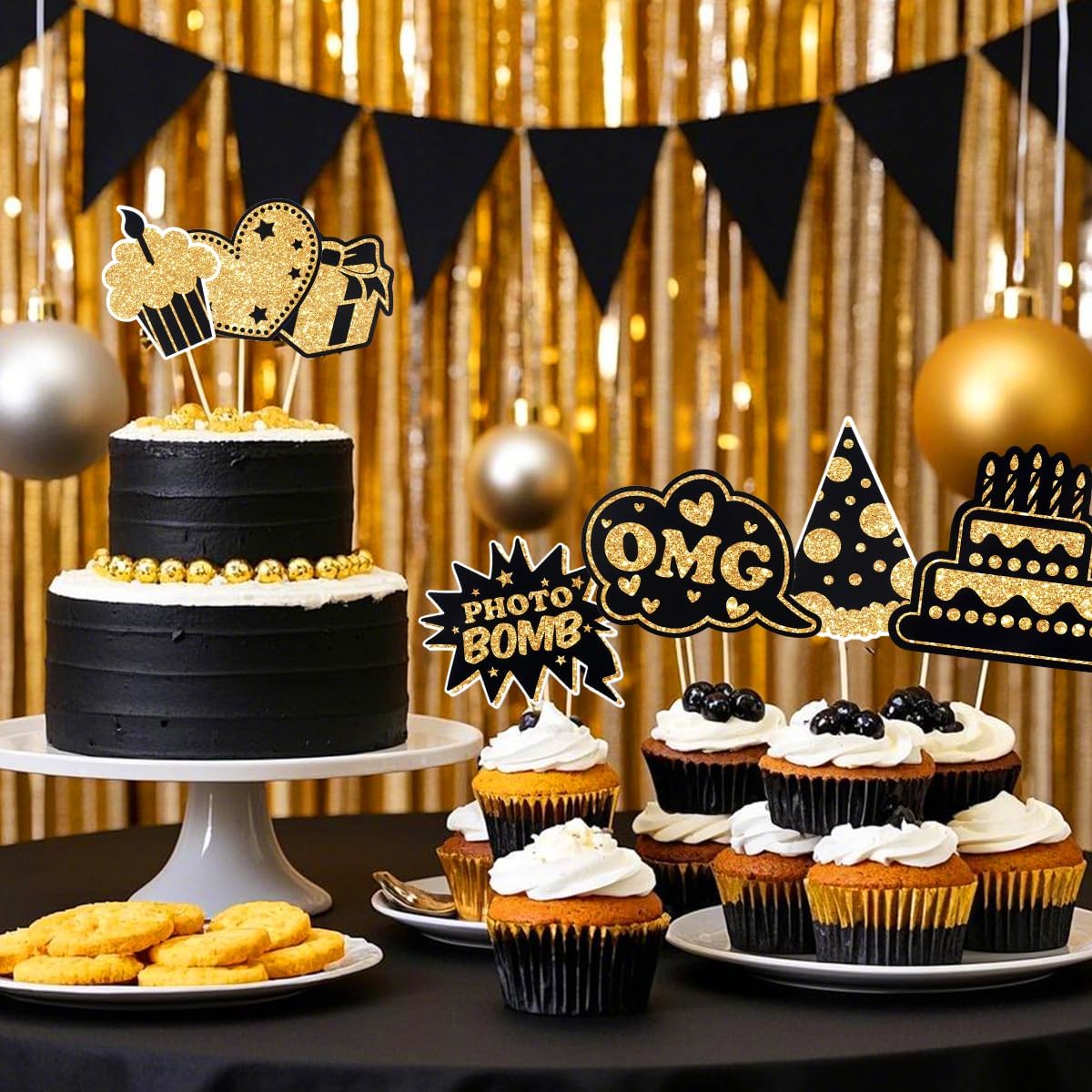 30 Pc Gold & Black Glitter Photo Booth Props – Party Decorations
