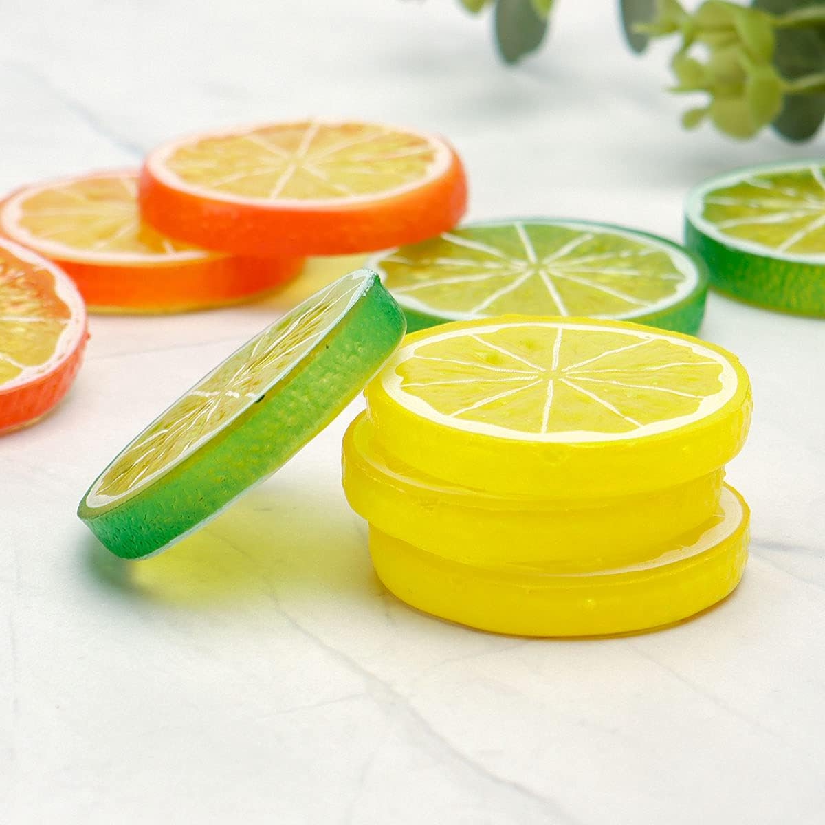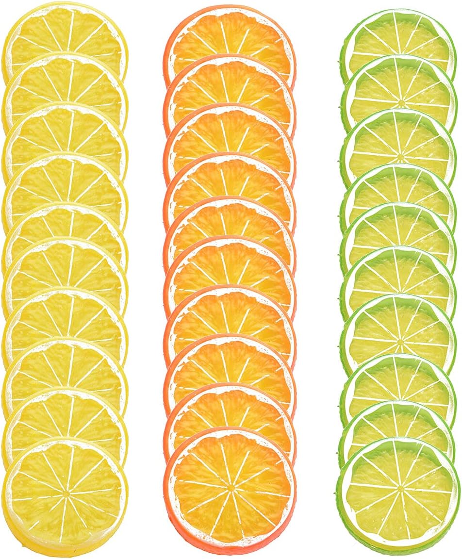 30 PCS Artificial Lemon Slices - Simulation Lemon Slices Plastic Fake Fruit Artificial Lifelike Small Fruit Model for Home Kitchen Table Party Decor Photography Prop Wedding Decoration (Mixed Colors)