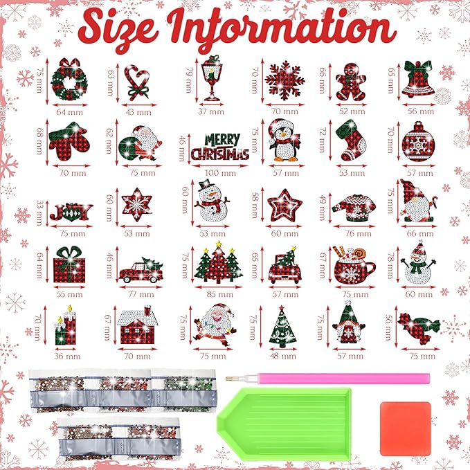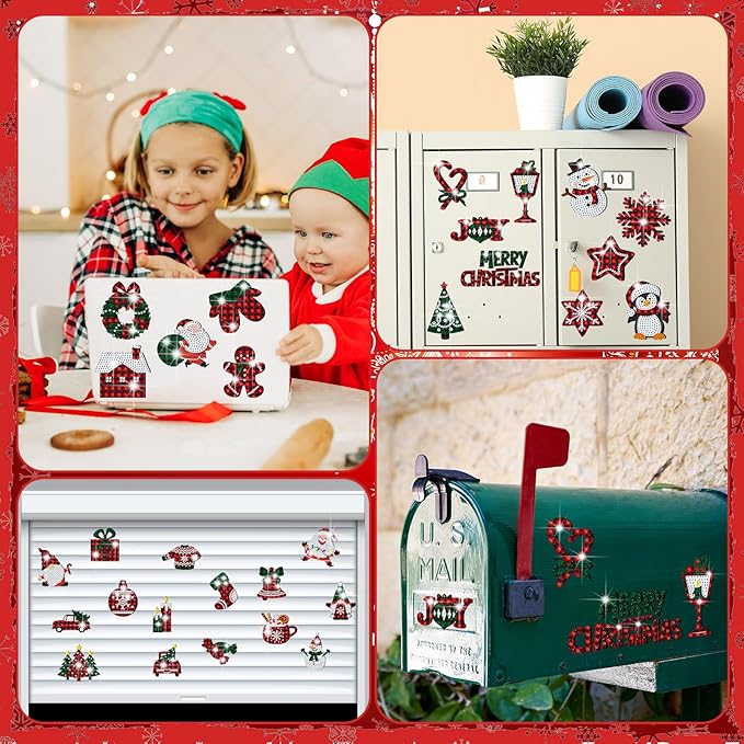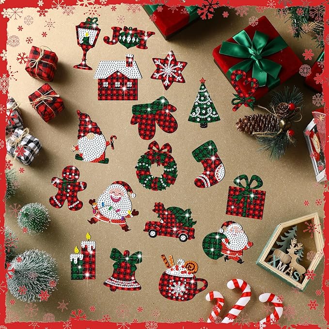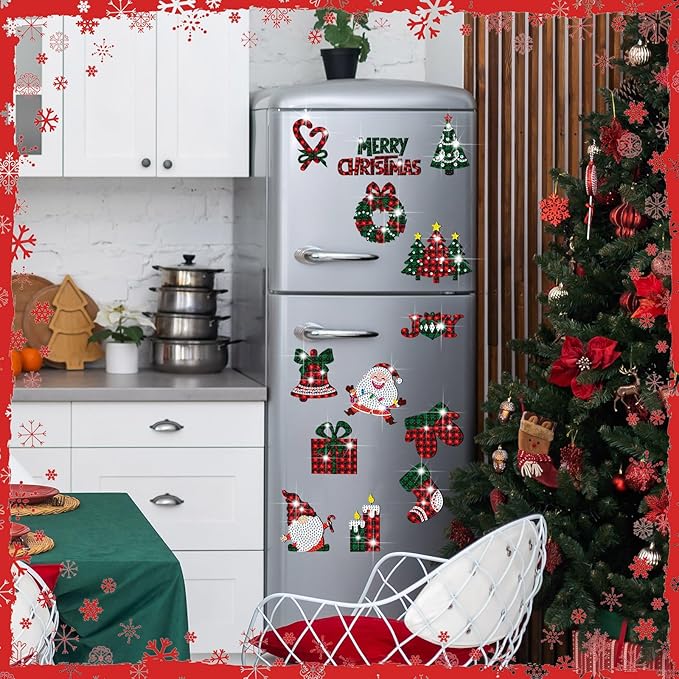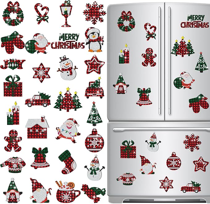 30 Pcs Christmas Diamond Painting Magnets for Refrigerator Buffalo Plaid Diamond Art Painting Kits Magnets Red Green White Fridge Diamond Stickers for Xmas DIY Home Decors