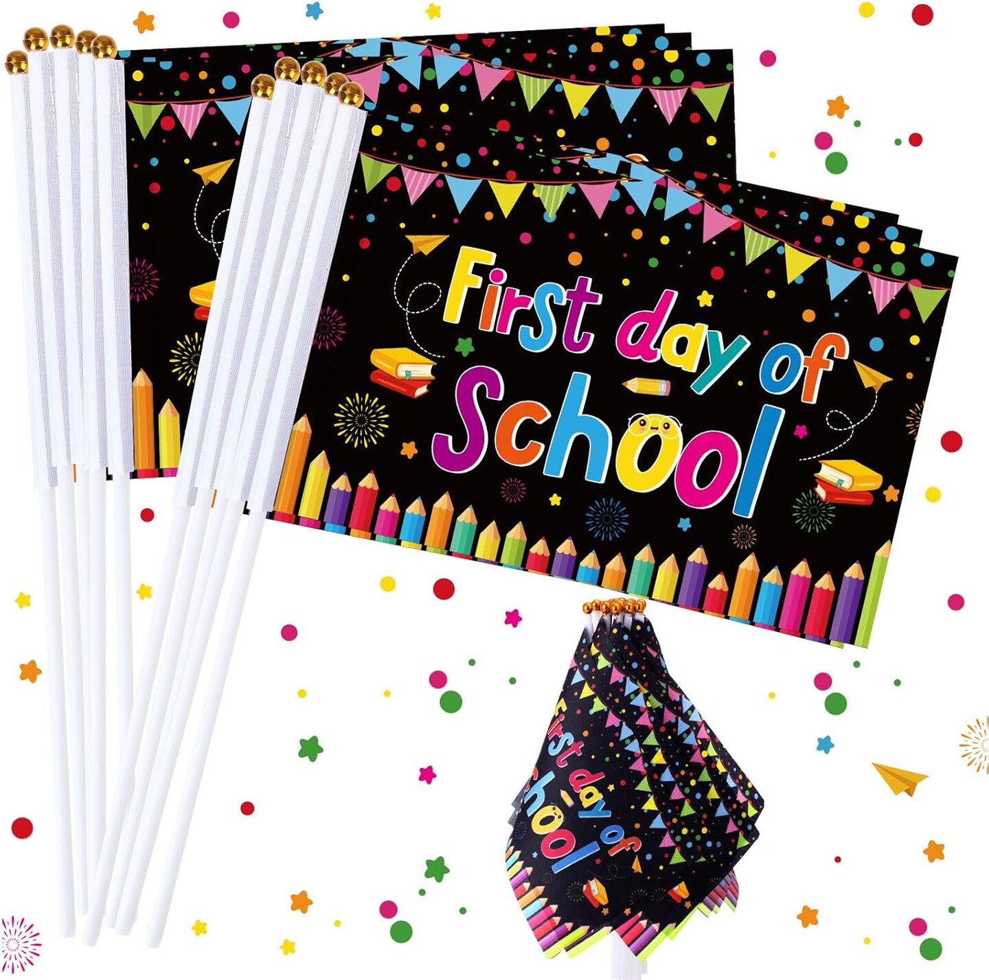 30 Pcs First Day of School Flags Small Mini Handheld Flags