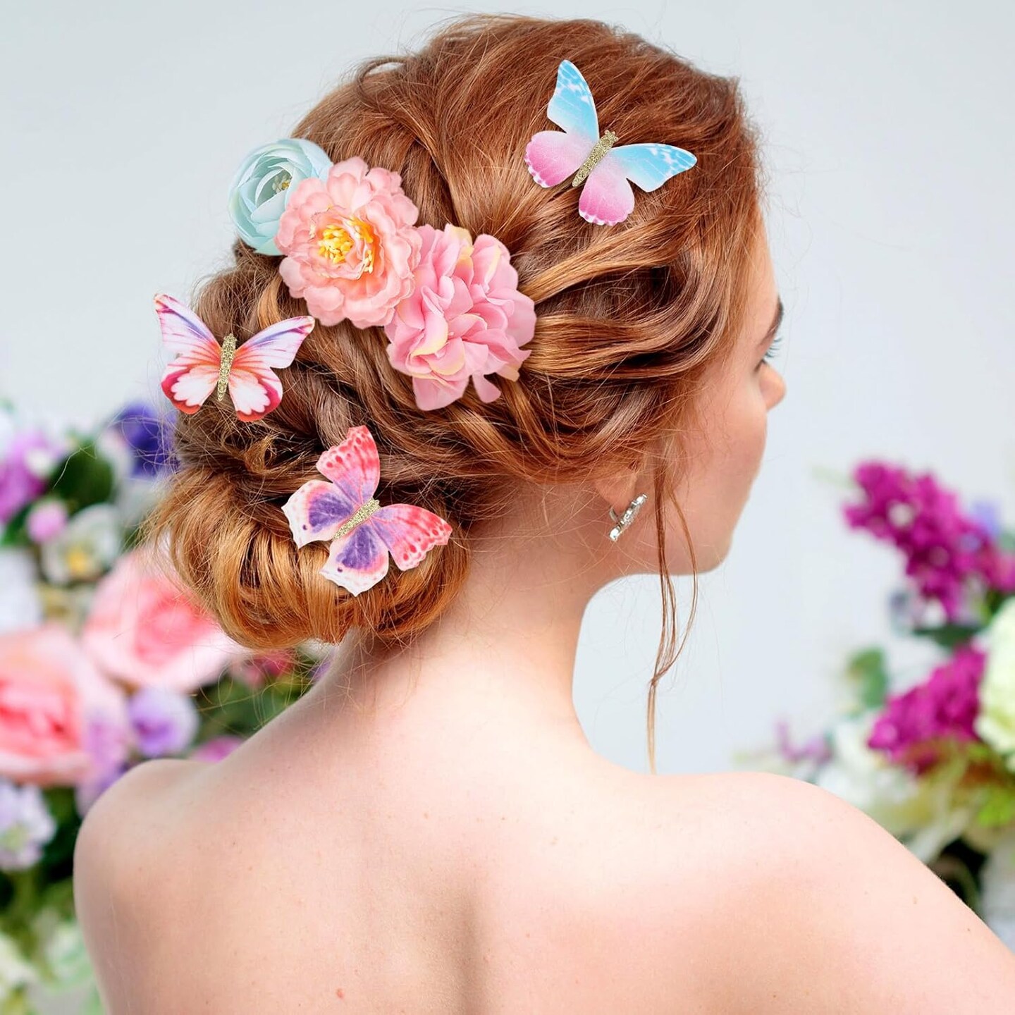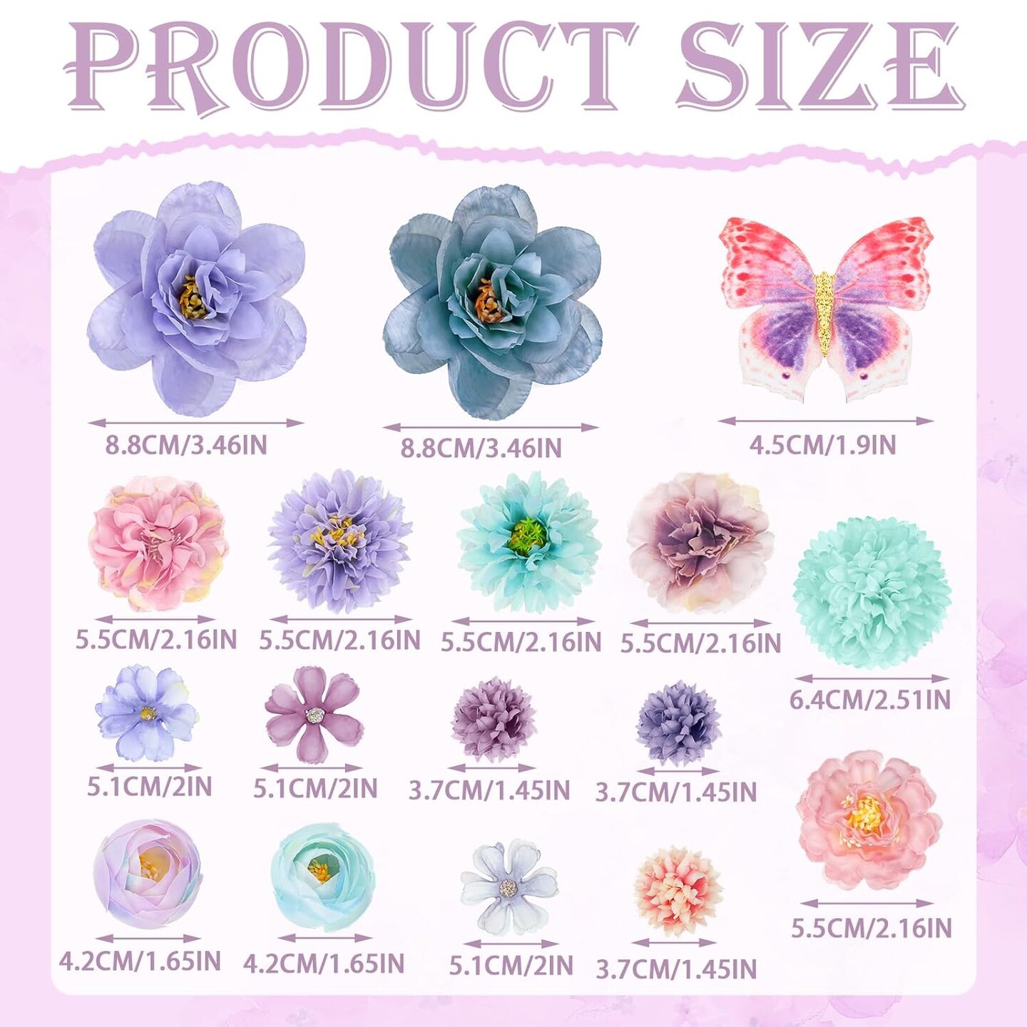 30 Pcs Flower and Butterfly Hair Clips for Women (Blue, Purple)