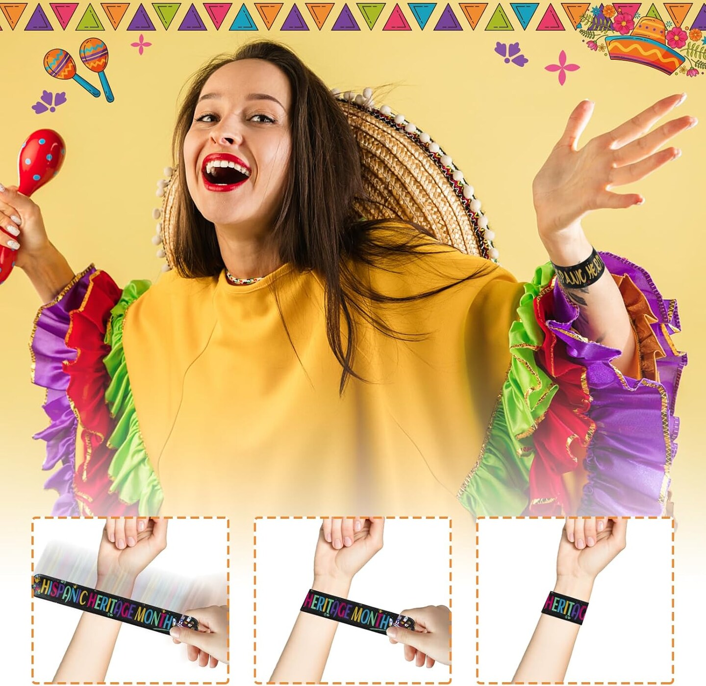 30 Pcs Hispanic Heritage Month Decorations Slap Bracelets Party Favors(Colorful)