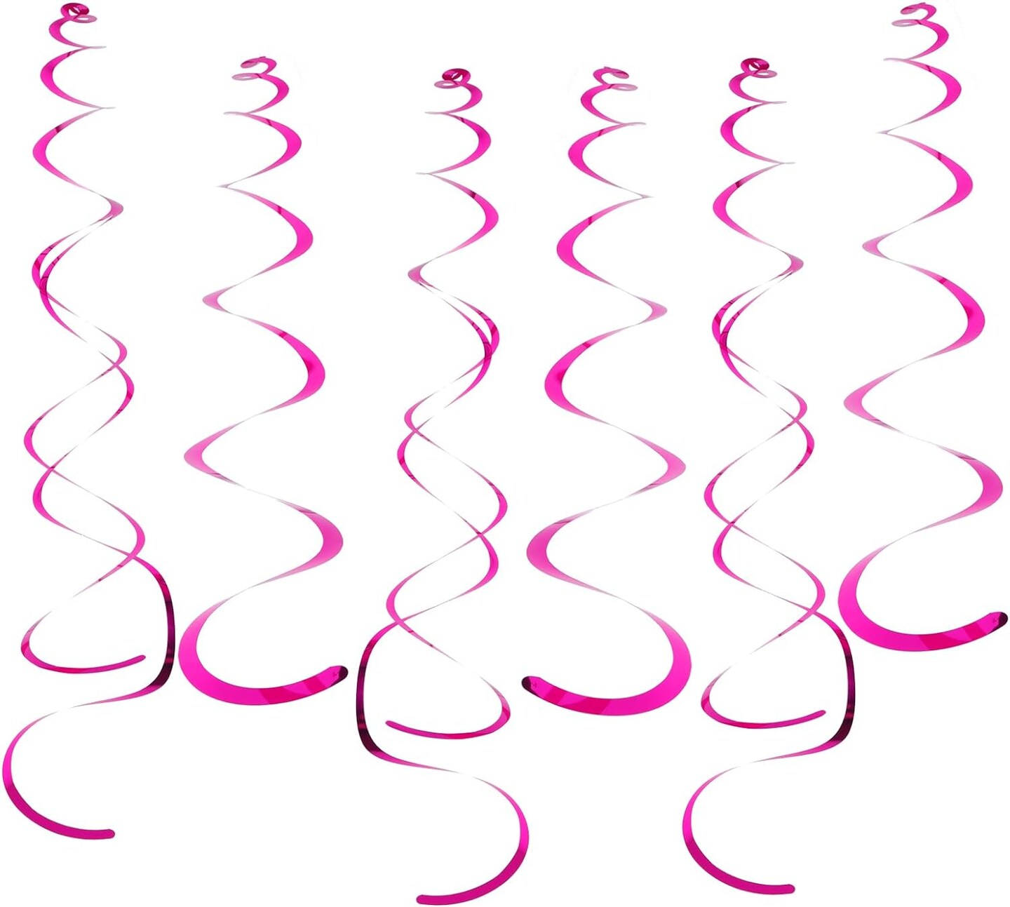 30 PCS Party Swirl Decorations Hot Pink Shinny Foil Hanging Swirl Decorations with Double-Swirls and Single-Swirls Plastic Streamer for Ceiling Plastic Metallic Streamer for Party Decorations