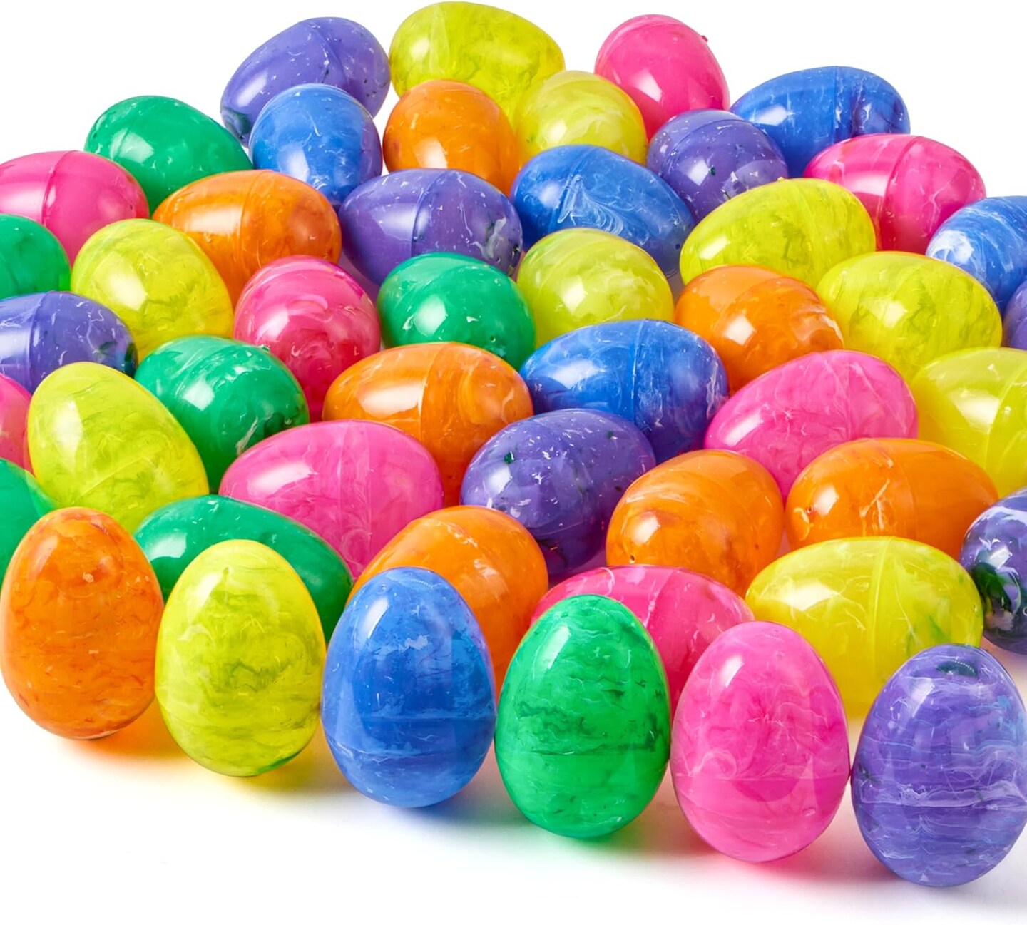 30 Pcs Plastic Iridescent Printed Bright Easter Eggs 3.15" Tall for Easter Hunt, Basket Stuffers Fillers, Classroom Prize Supplies, Filling Treats and Party Favor