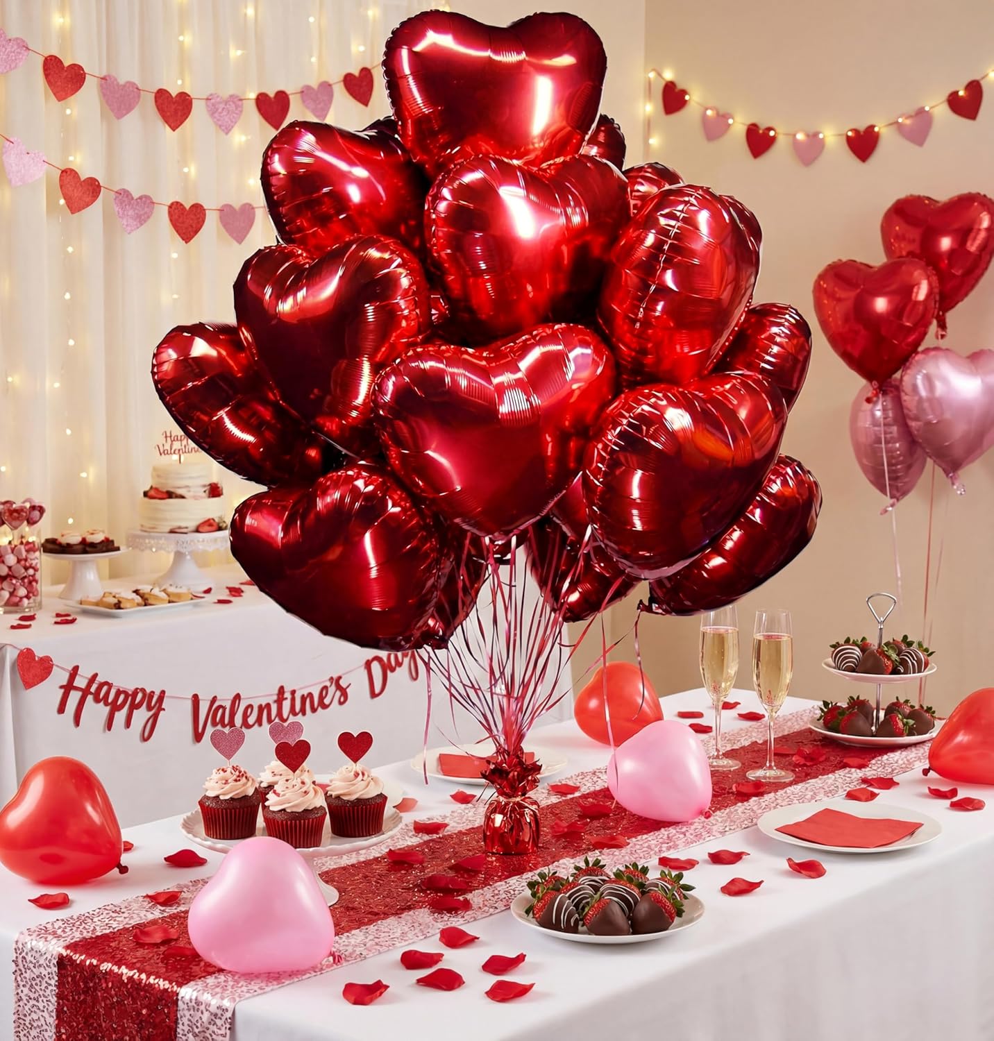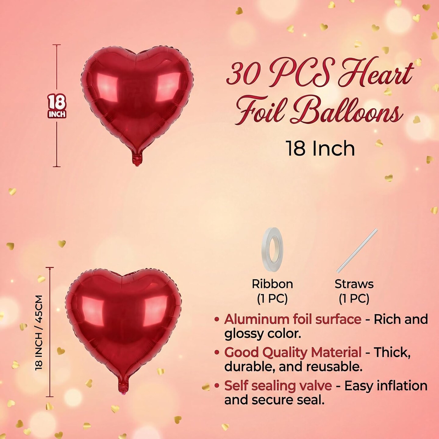30 Pcs Red Heart Foil Balloons 18 Inch – Love Mylar Balloons for Valentine’s Day Decorations, Wedding Proposal, Party Backdrop & Birthday Supplies