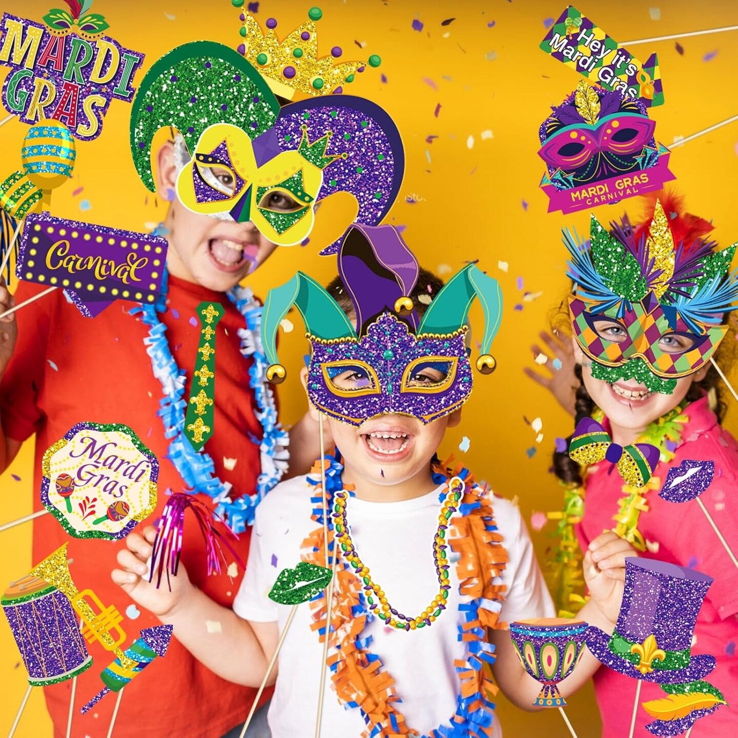 30 Pieces Mardi Gras Photo Booth Props Masquerade Party Photo Booth Props for New Orleans Party Birthday Party Supplies Decorations