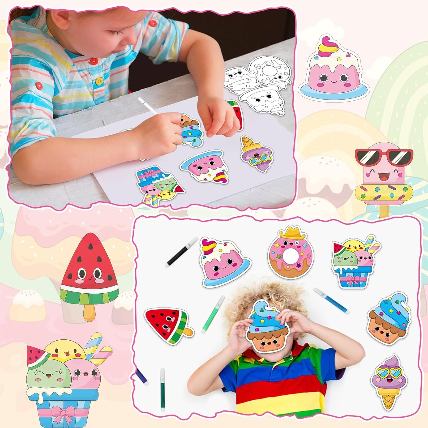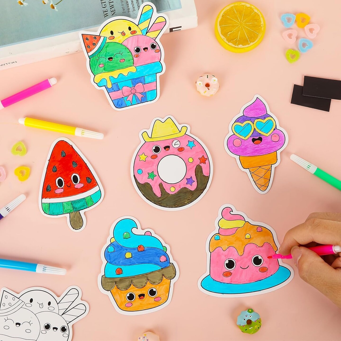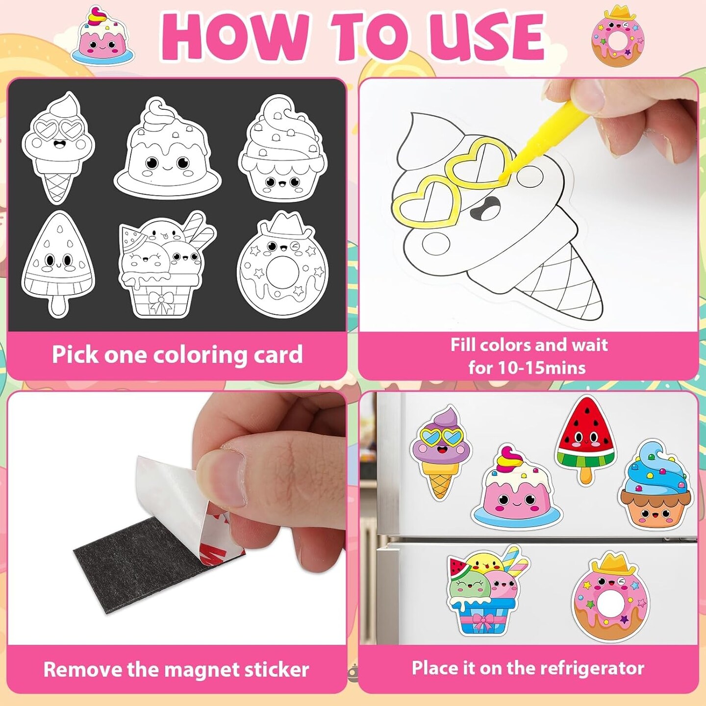 30 Sets Summer Dessert Arts Crafts Coloring Magnets Kits for Fridge Kids Color Your Own Ice Cream Donut Cupcake DIY Magnetic Sweet Treat Crafts