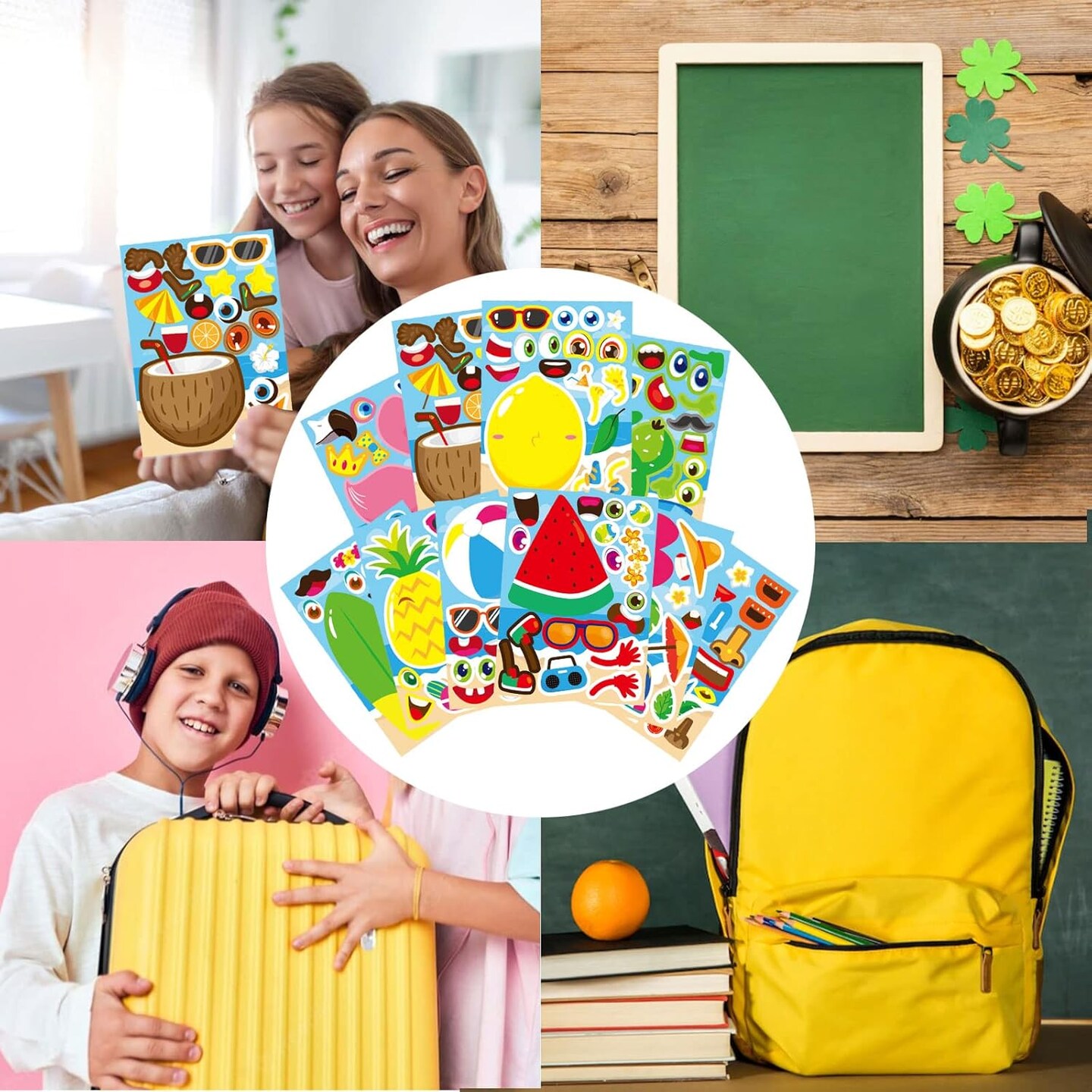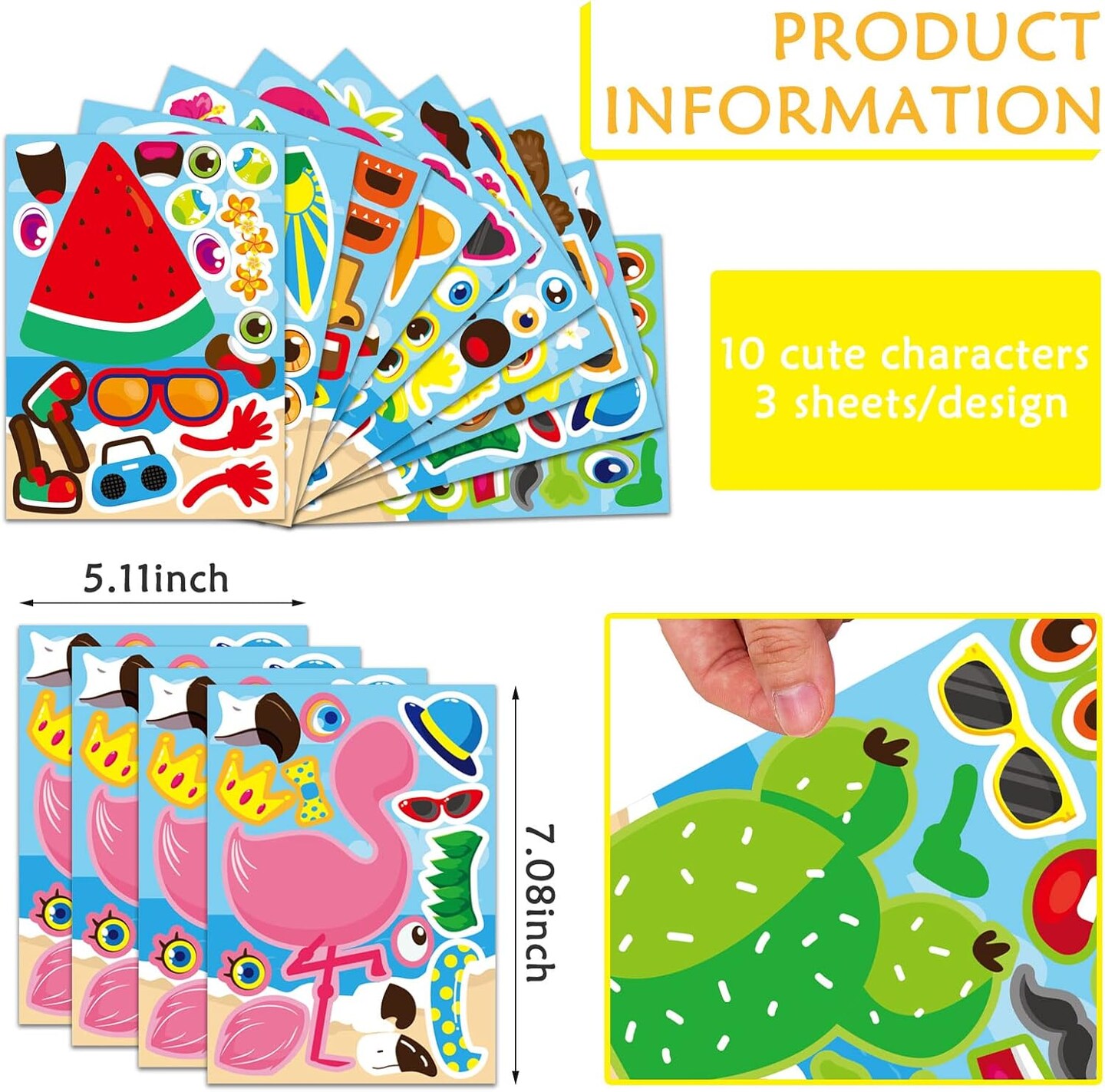 30 Sheets Hawaii Make a Face Sticker Summer Pool Beach Stickers for Kids Make Your Own Watermelon Pineapple Flamingo Stickers for Tropical Luau Craft Party Decor Sticker Summer Holiday Party Favors