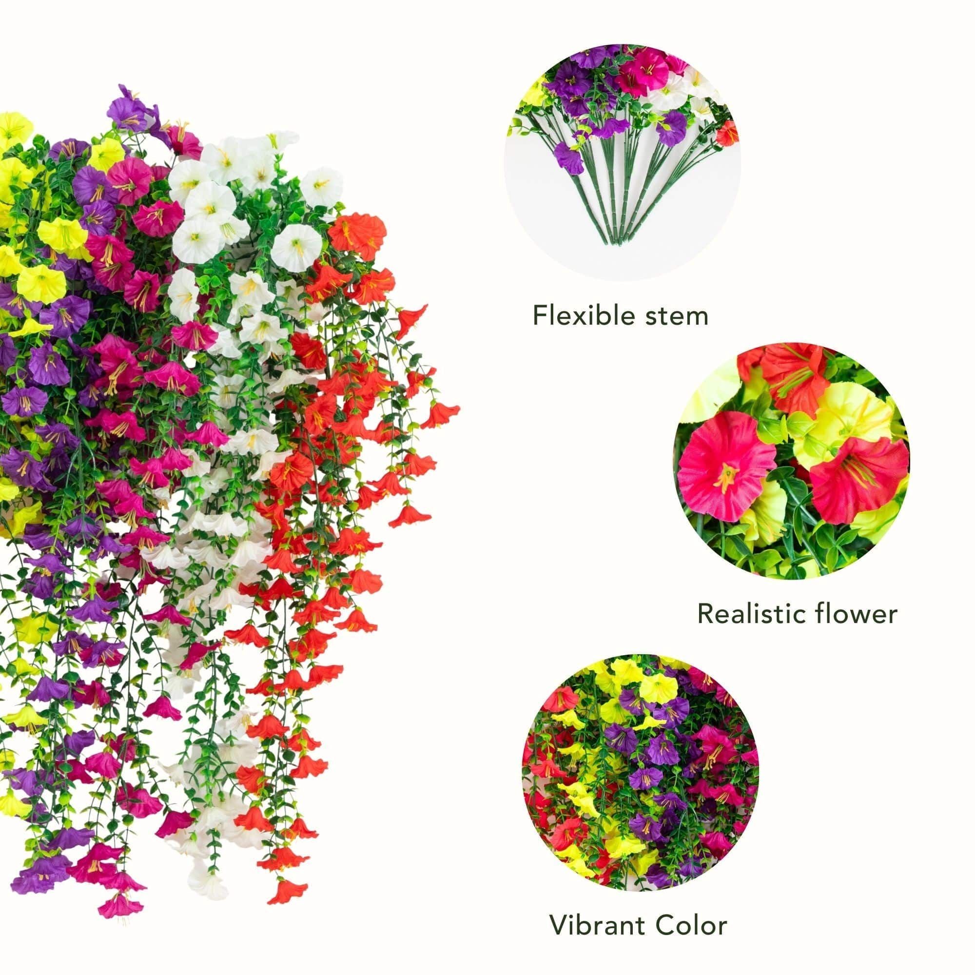 30" UV Resistant Artificial Morning Glory Hanging Plants, 6ct.