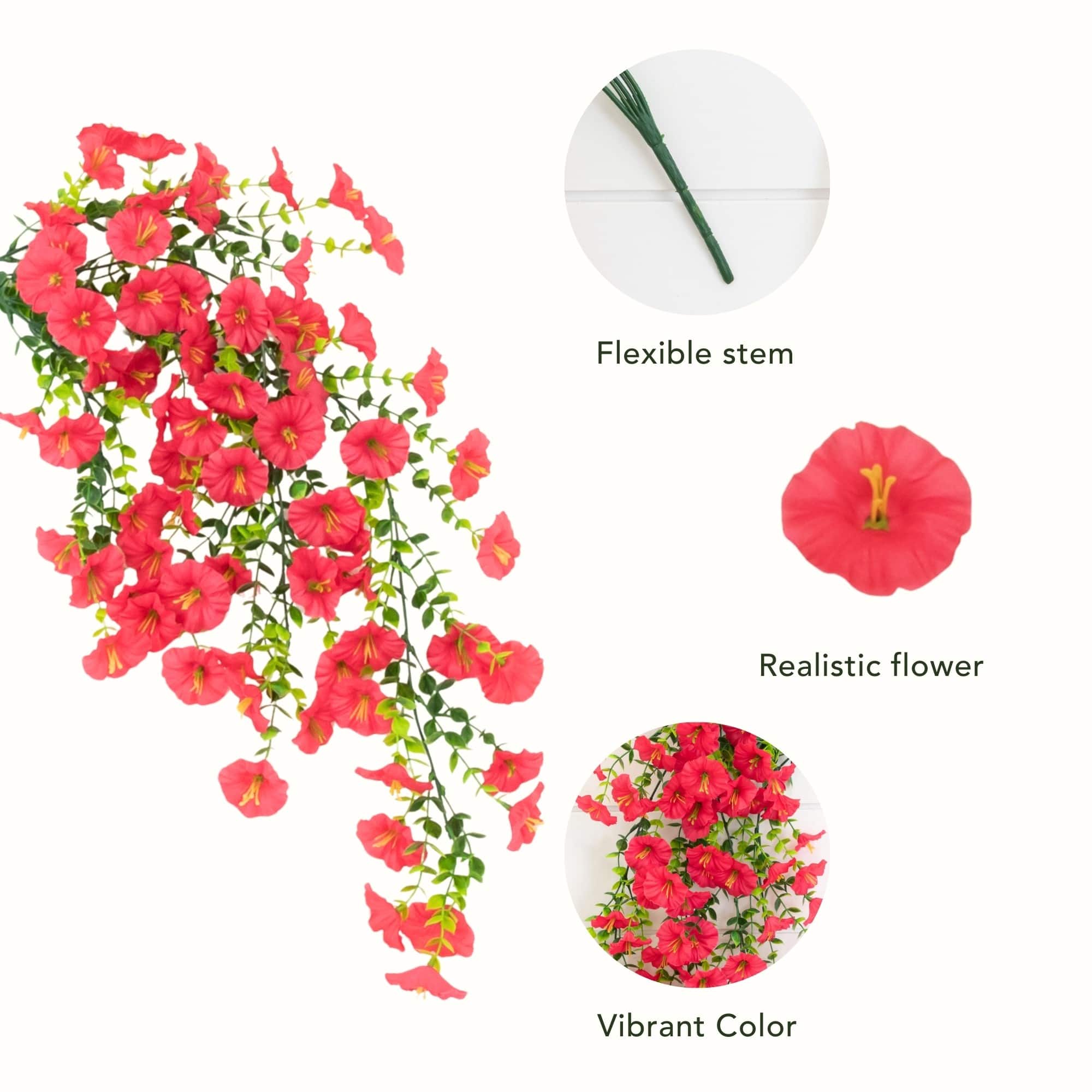 30" UV Resistant Artificial Morning Glory Hanging Plants, 6ct.