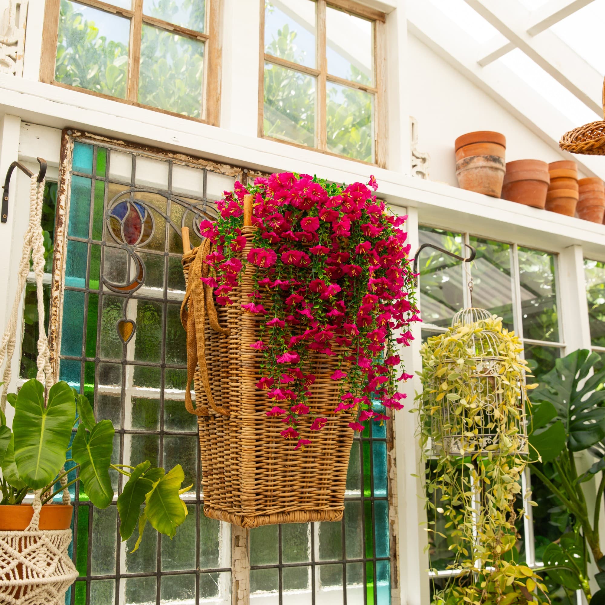 30" UV Resistant Artificial Morning Glory Hanging Plants, 6ct.