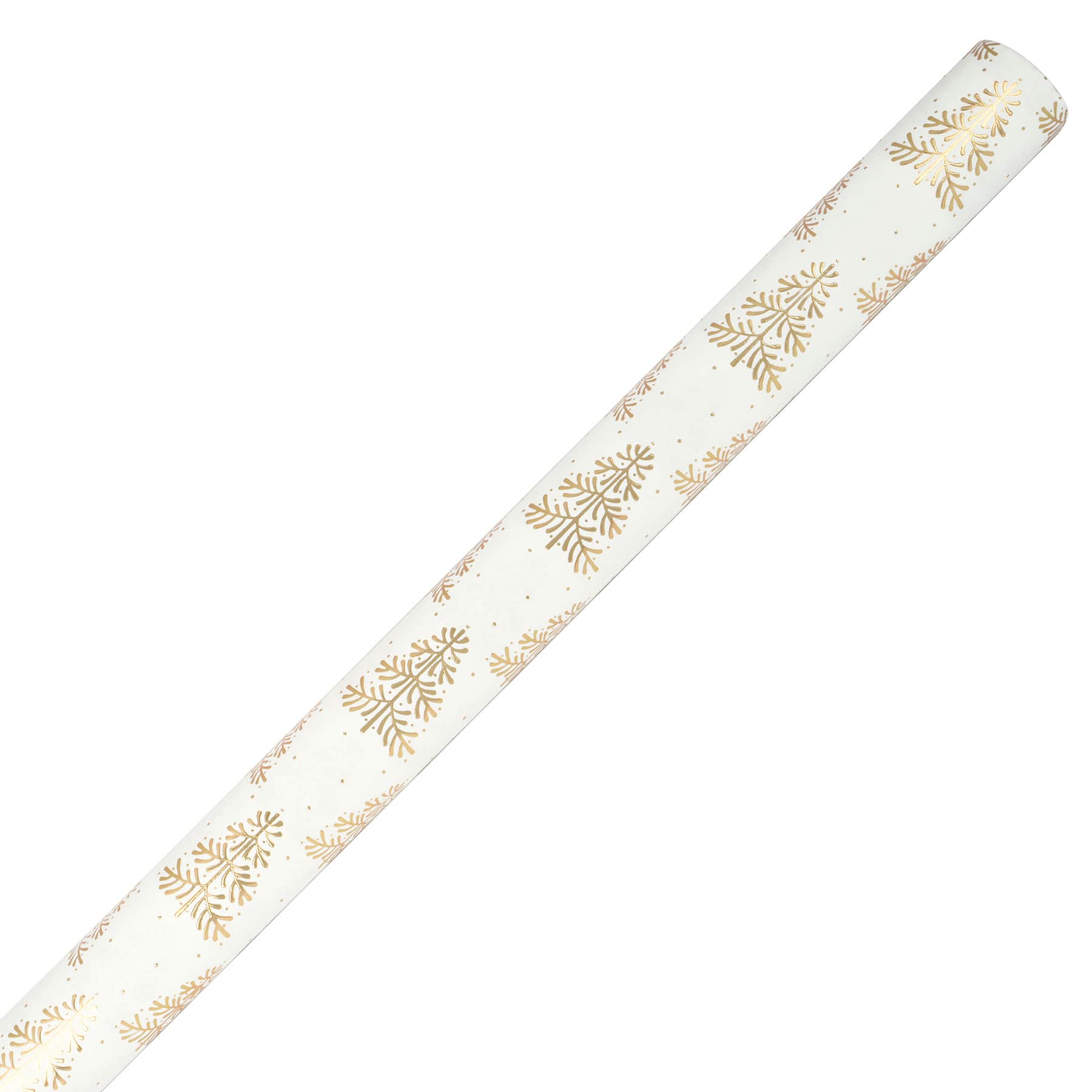 30" x 24ft. White with Gold Christmas Tree Foil Gift Wrap by Celebrate It™